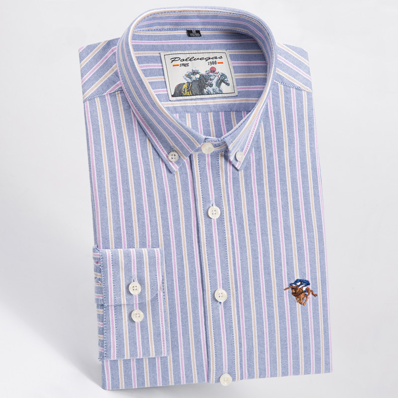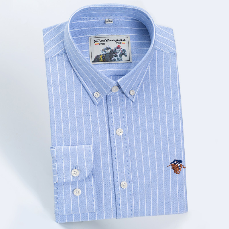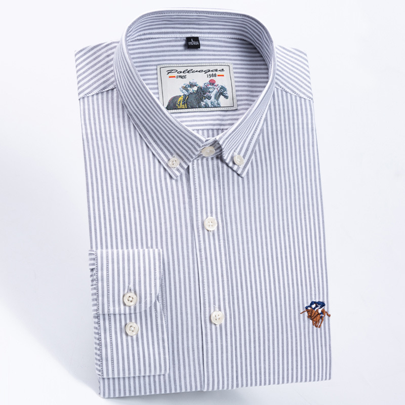 폴 남성용 고급 면 긴팔 셔츠 패션 스트라이프 셔츠 면 옥스포드 워시 캐주얼 탑스토어 가기