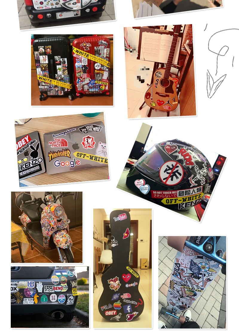 50 비 반복 패션 브랜드 최고의 만화 낙서 스티커 기타 스케이트 보드 냉장고 장식 방수 DIY 스티커스토어 가기
