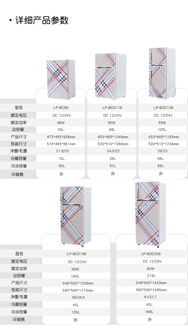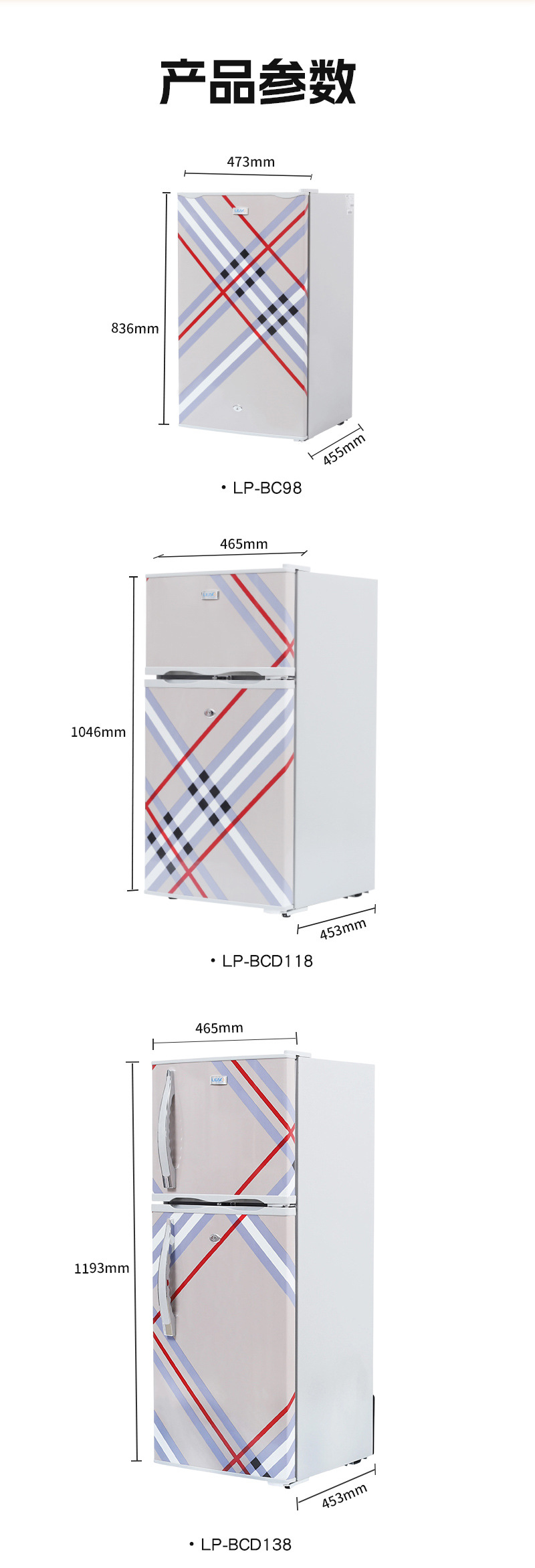 맞춤형 태양광/RV 냉장고 냉동고 LP-BC98 냉장 냉동 이중 도어 냉장고 광전지 냉장고
