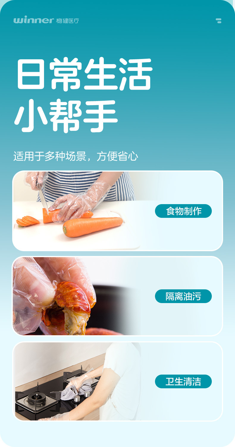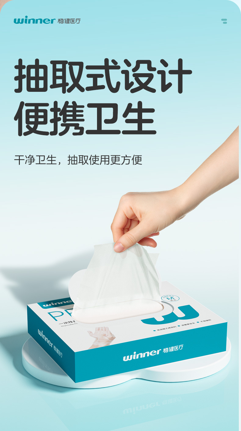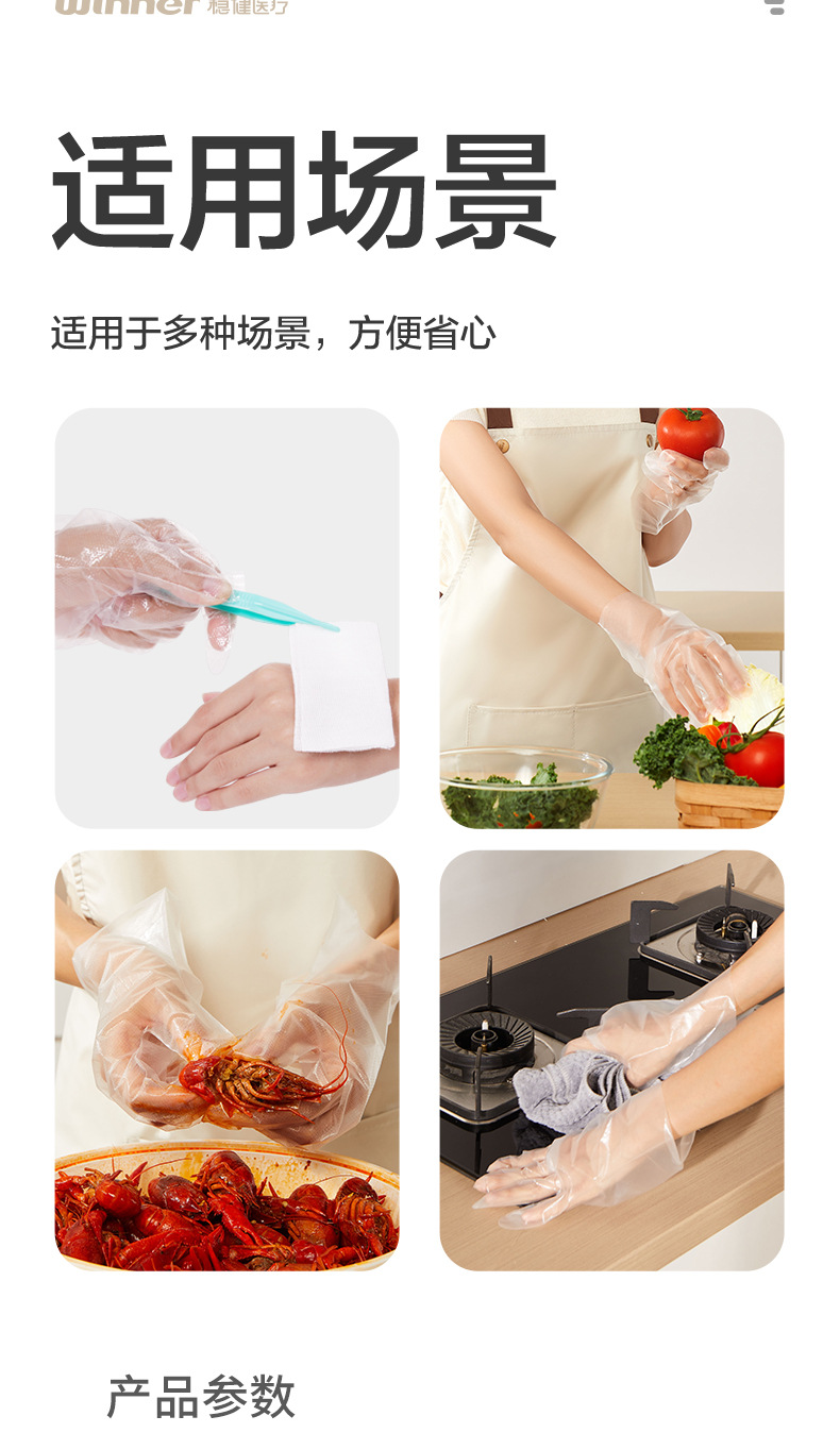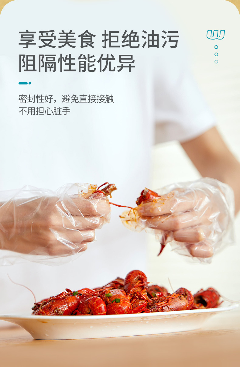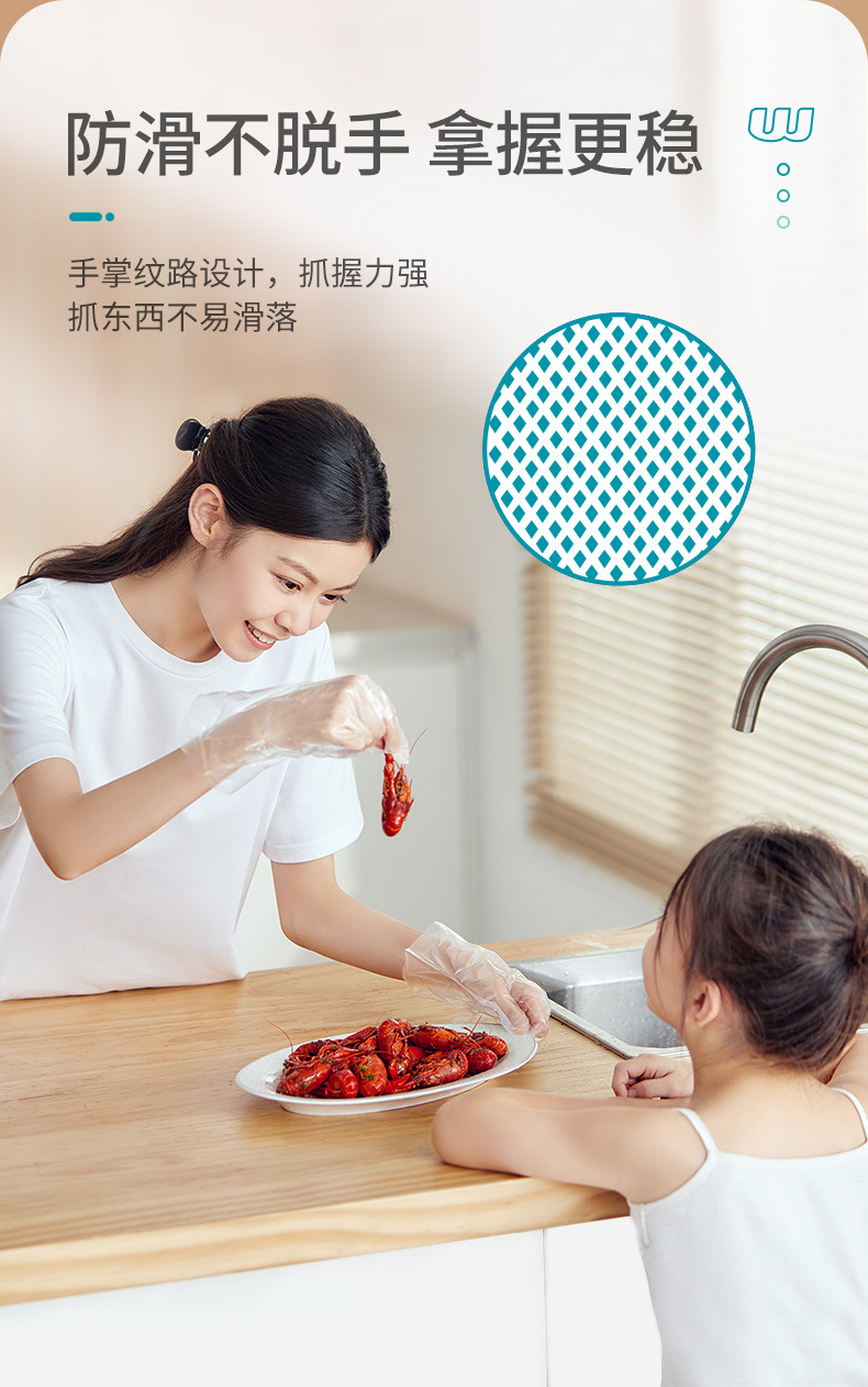 우승자 강력한 의료 일회용 검사 장갑 PE 플라스틱 투명 미끄럼 방지 얇은 100/상자