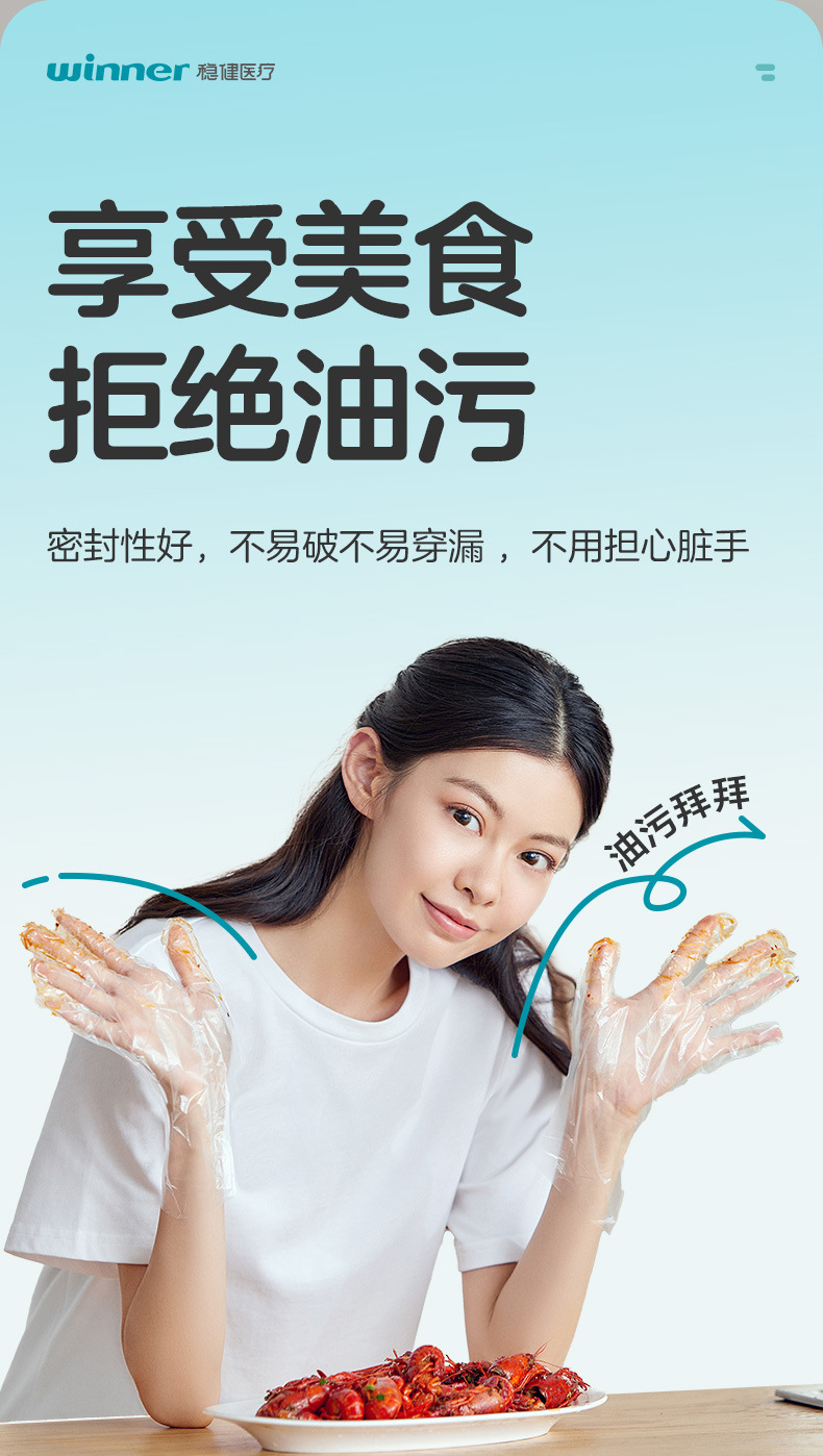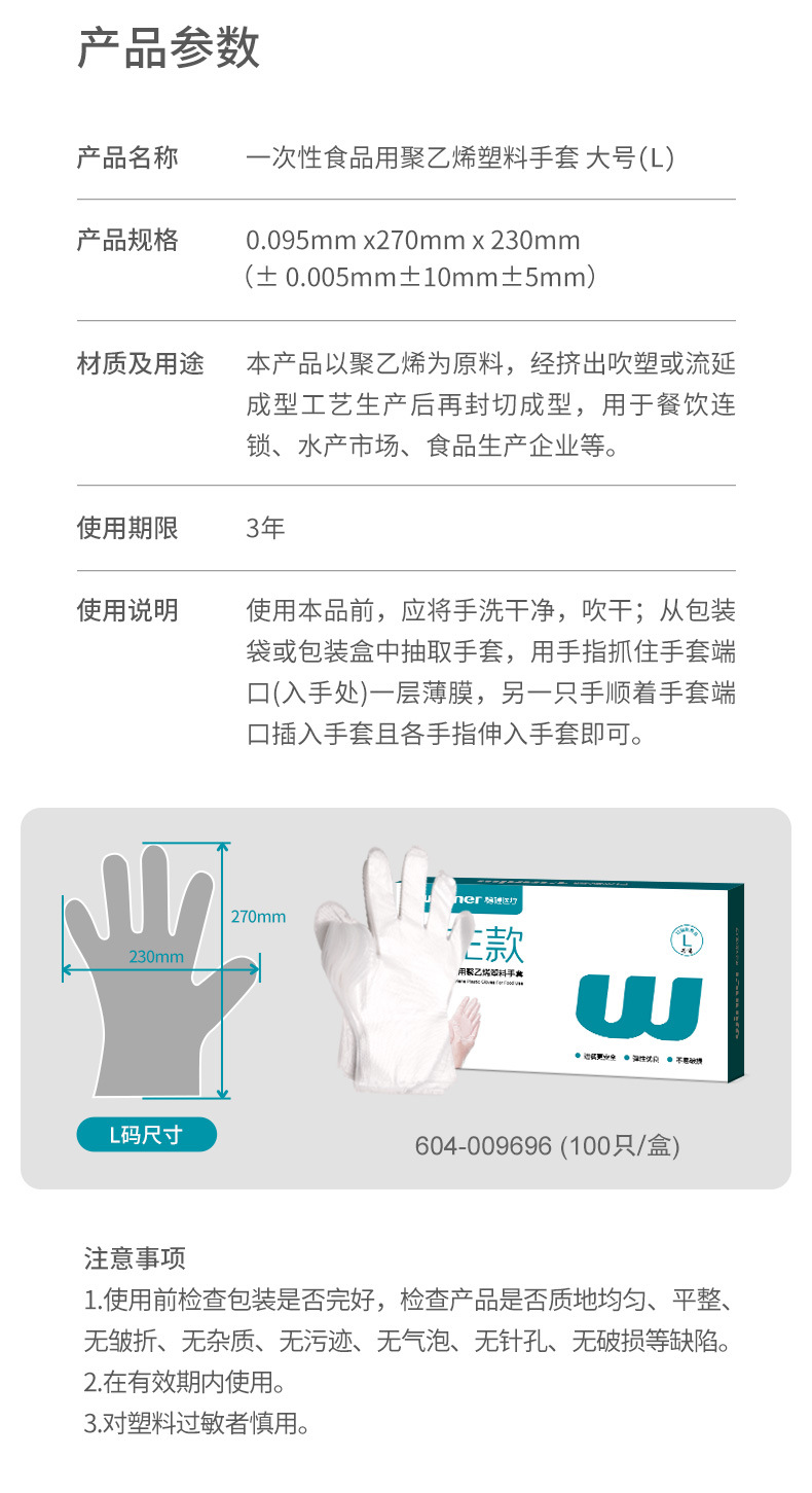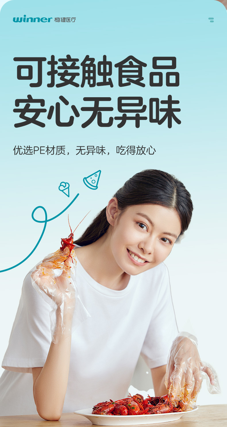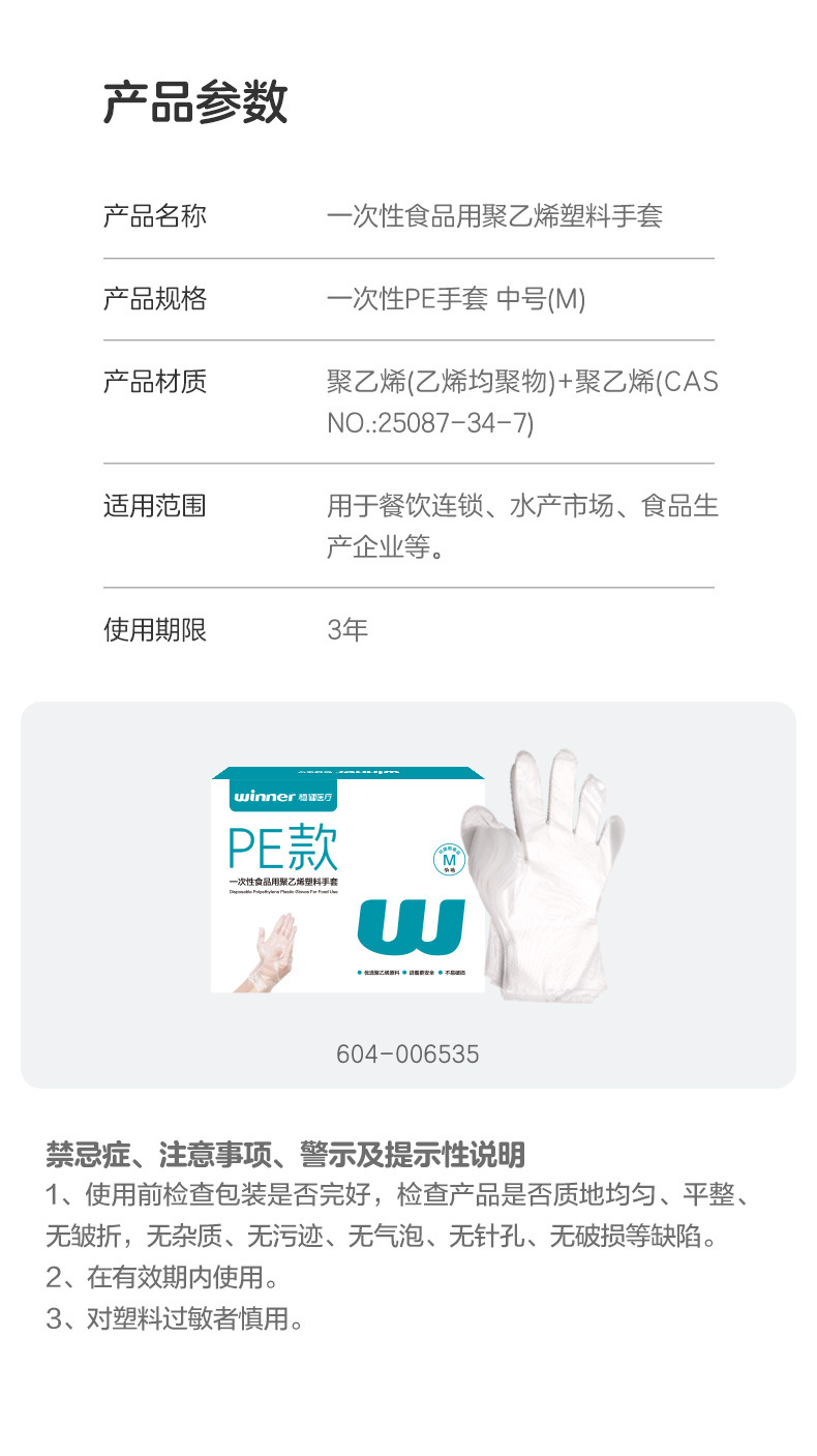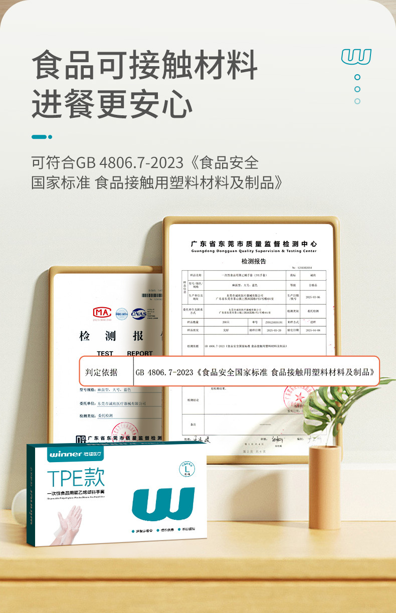 우승자 강력한 의료 일회용 검사 장갑 PE 플라스틱 투명 미끄럼 방지 얇은 100/상자