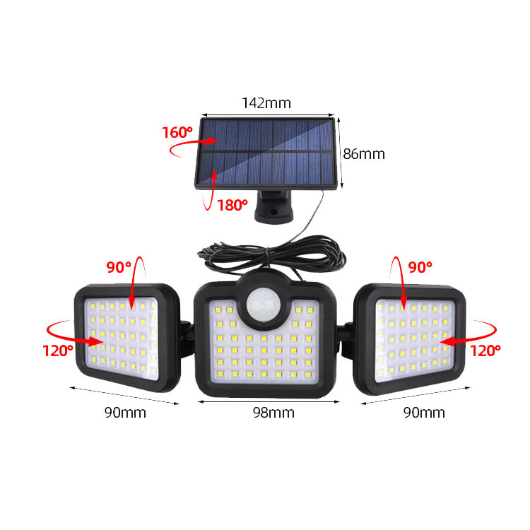 태양광 조명, 138LED 조명 벽등 정원등 실외등 3등 스포트라이트 투광등 태양광 벽등