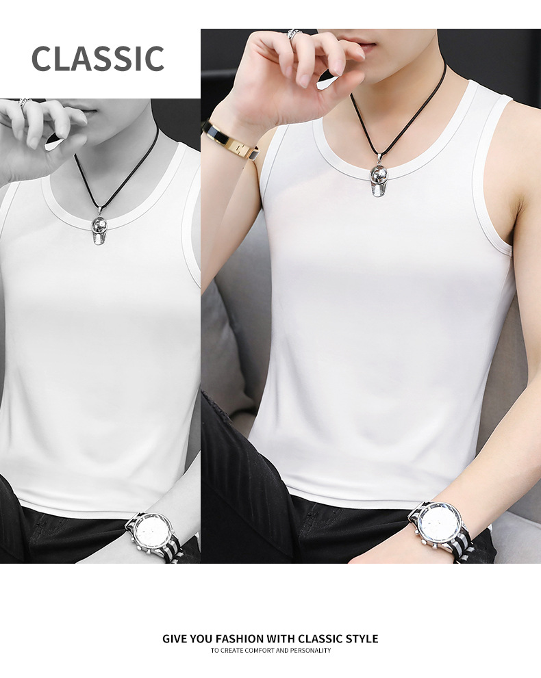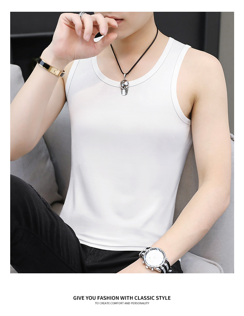 아이스 실크 모달 라운드넥 남성용 조끼 여름 슬림핏 통기성 스포츠 조끼 민소매 피트니스 조끼 남성용