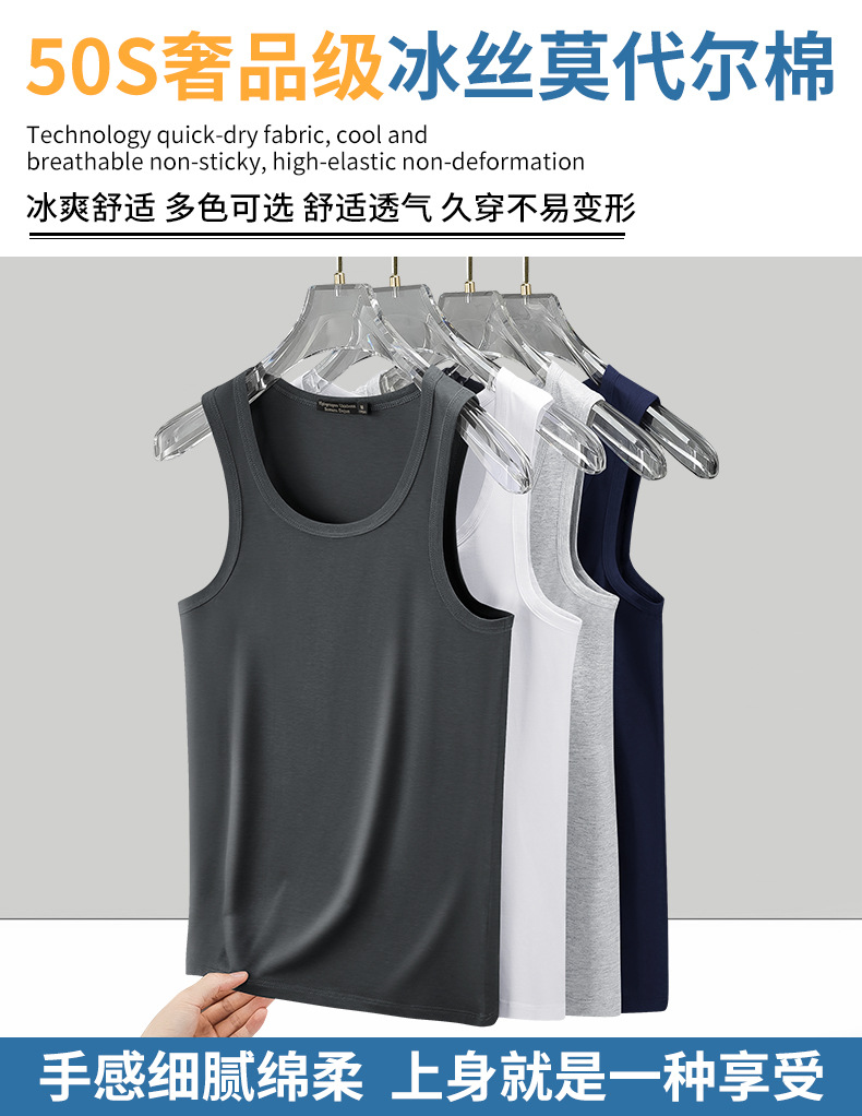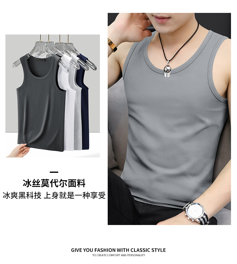 아이스 실크 모달 라운드넥 남성용 조끼 여름 슬림핏 통기성 스포츠 조끼 민소매 피트니스 조끼 남성용스토어 가기