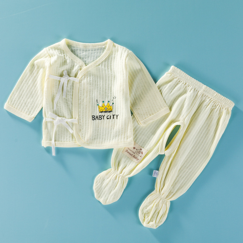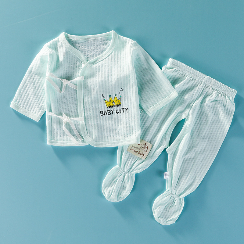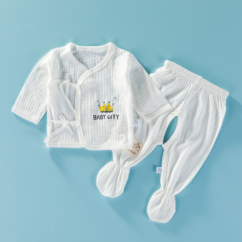 신생아용 긴팔 여름옷 신생아 발 포장 속옷 세트 얇은 출산 아기 수도사 옷스토어 가기