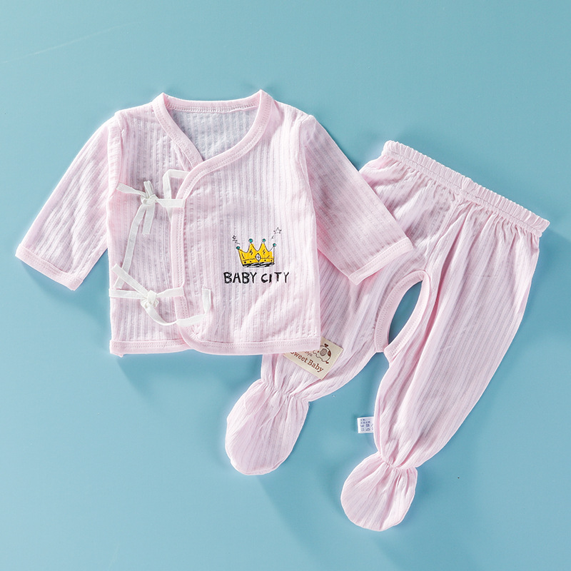 신생아용 긴팔 여름옷 신생아 발 포장 속옷 세트 얇은 출산 아기 수도사 옷