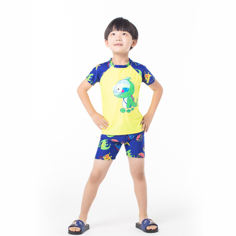 어린이 수영복 소년 분할 소형, 중형 및 대형 어린이 아기 반팔 수영 트렁크 세트 수영 모자 도매