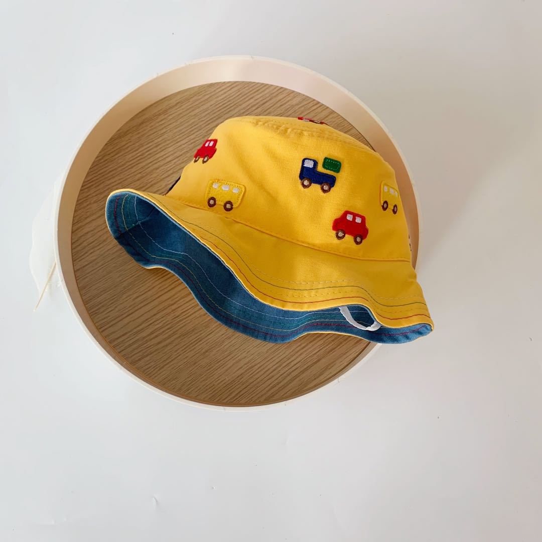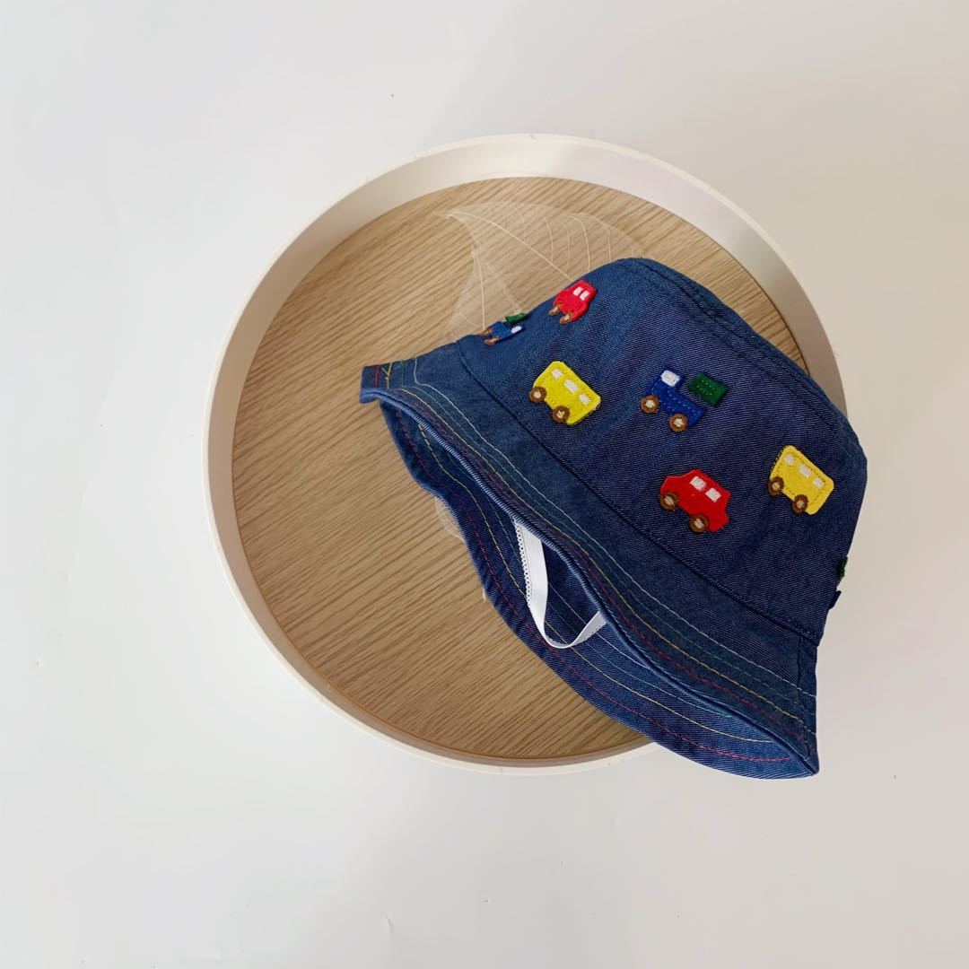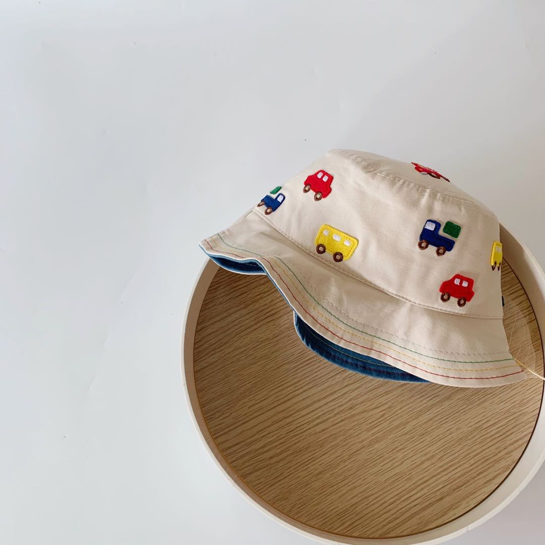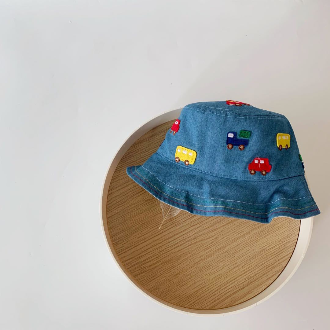 M9870 일본식 어린이 모자, 만화 자동차 자수 어부 모자, 남아 여아용 양동이 모자, 햇빛 가리개 모자, 도매, 매우 귀엽습니다.스토어 가기