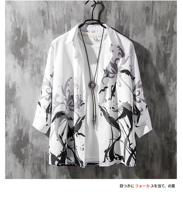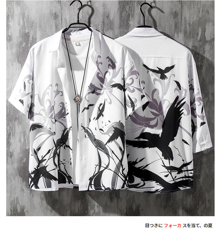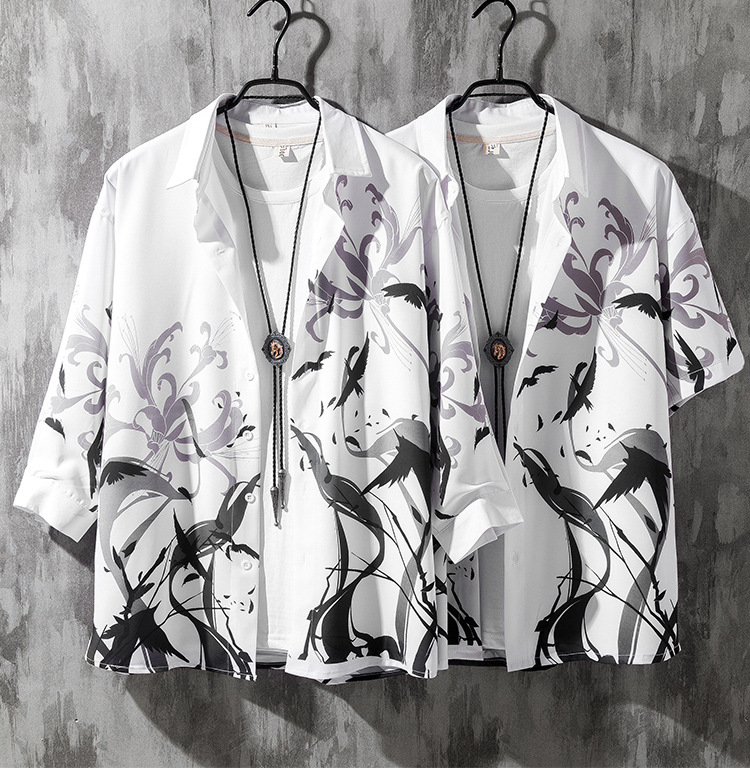 중국 스타일 남성 셔츠 2023 여름 새로운 스타일 일본 복고풍 캐주얼 Hanfu 대형 유행 긴팔 셔츠 남성용스토어 가기