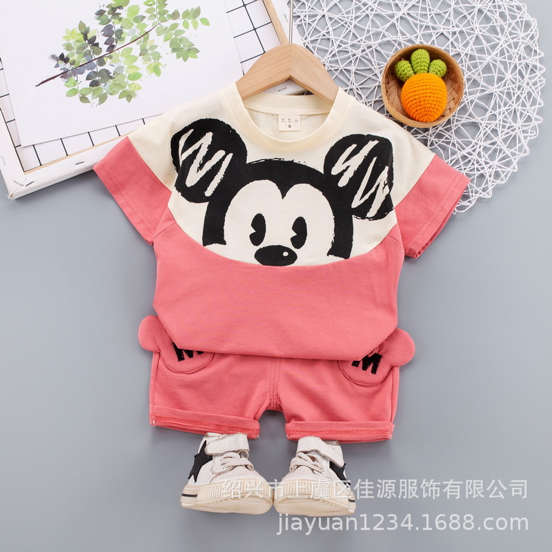 어린이 의류 2023 여름 새로운 소년과 소녀 아기 색상 일치하는 만화 동물 대외 무역 국경 세트 한국어 버전