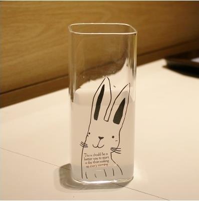 사각 인쇄 단층 컵 가정용 키 큰 차가운 음료 주스 컵 붕규산 투명 유리 물컵스토어 가기