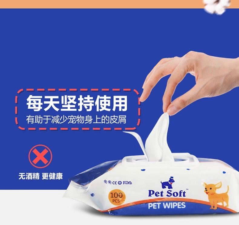 고양이와 개를위한 Petsoft 애완 동물 특수 물티슈 냄새를 제거하는 특수 물티슈 개 엉덩이 뜨거운 물티슈 100 개