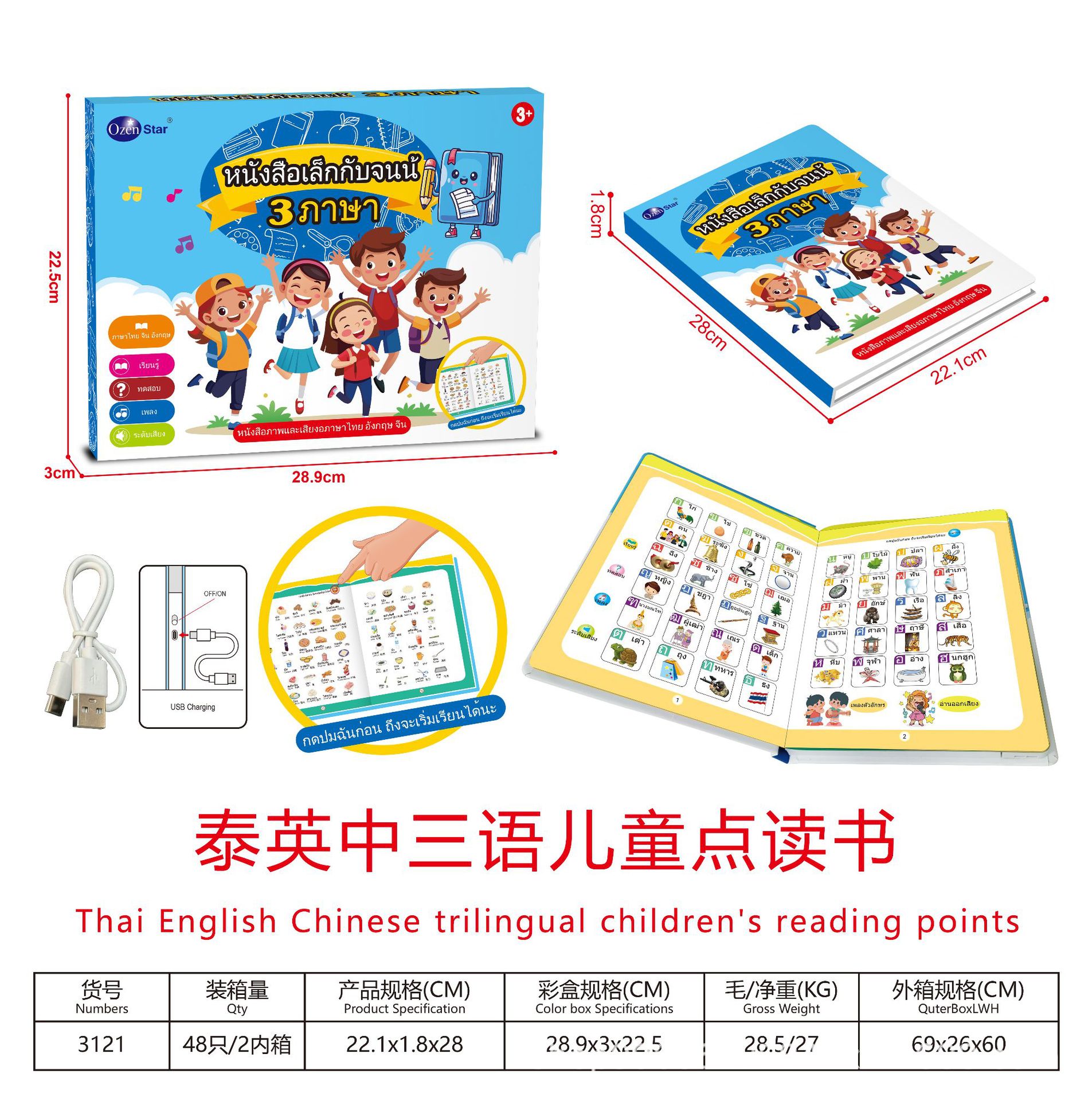 중국어, 영어 및 태국어 3 개 언어 포인트 읽기 어린이 조기 교육 음성 책인지 학습 완구 지능형 오디오 전자 책