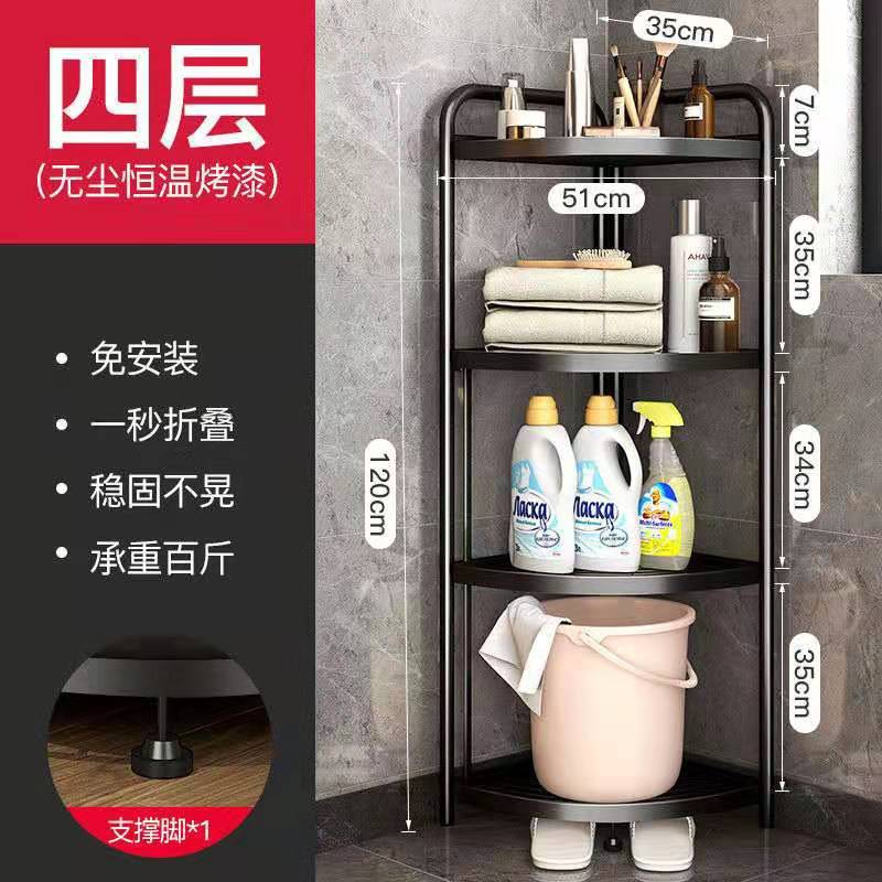 공장 직접 공급 주방 욕실 설치 무료 접이식 삼각대 바닥 스탠딩 다층 코너 랙 보관 랙스토어 가기