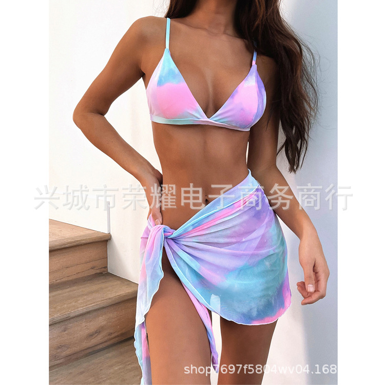 유럽과 미국은 싱글 비키니 3 피스 섹시한 수영복 여성 스플릿 수영복 비키니 도매 밖에서 타이 염료를 폭발