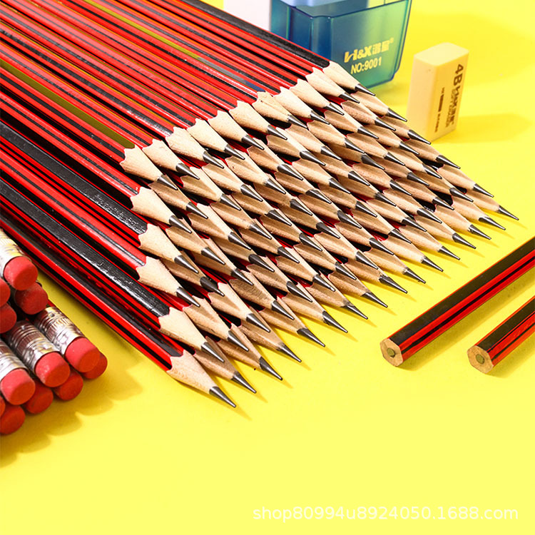 985 스트라이프 HB 연필 고무 줄무늬 학생 쓰기 어린이 그림 스케치 빨간색과 검은 색 막대 연필 도매스토어 가기