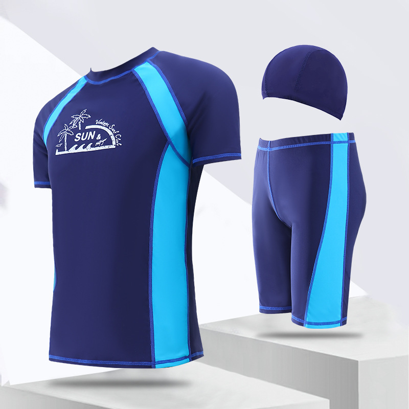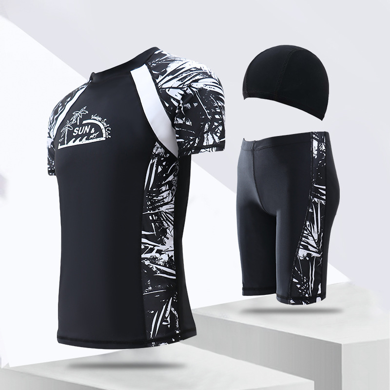 성인 수영 세트 남성용 스플릿 투피스 세트 남성용 자외선 차단제 반팔 서핑 스노클링 세트 따뜻한 온천 남성용 수영복스토어 가기