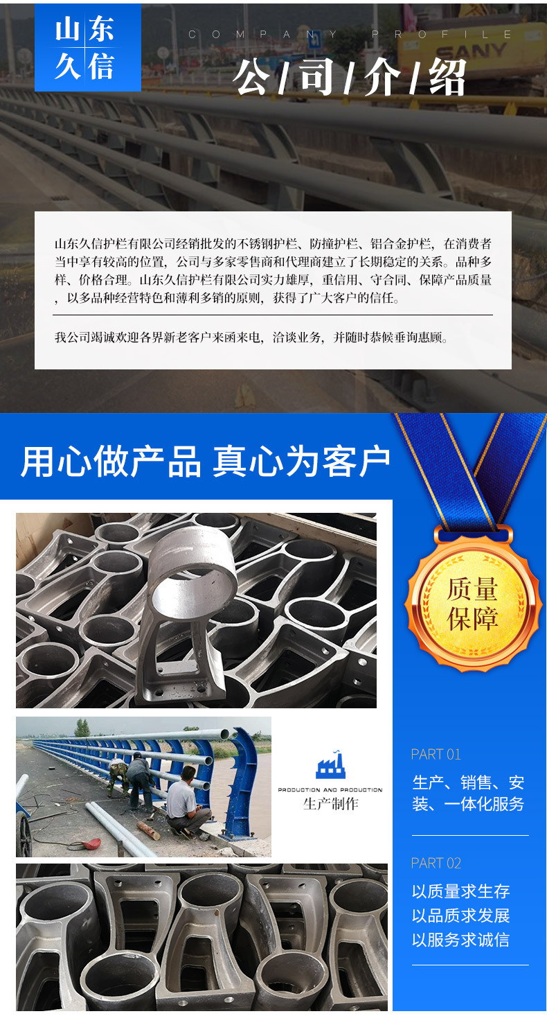 조경 강 흰색 강철 충돌 방지 난간 304 스테인레스 스틸 안전 보호 다리 난간 Q235B 강판 기둥