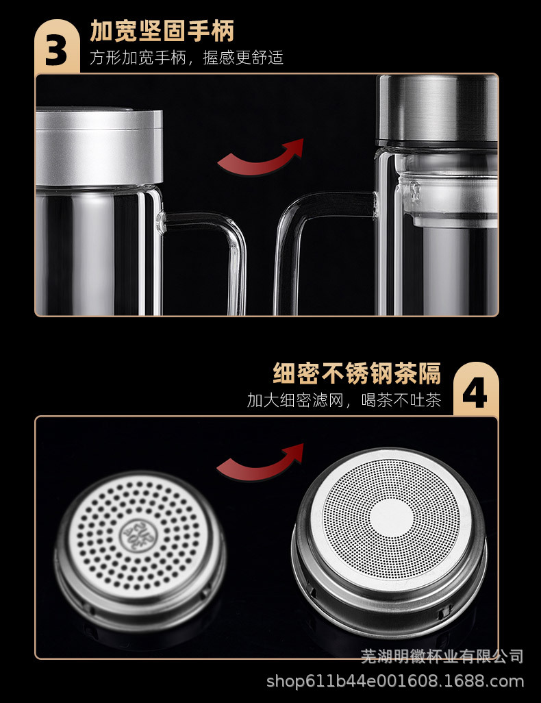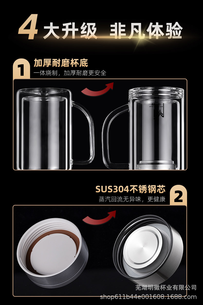 이중층 고붕규산 유리 손잡이가있는 도매 물컵 고온 방지 데임 방지 찻잔 개봉 선물