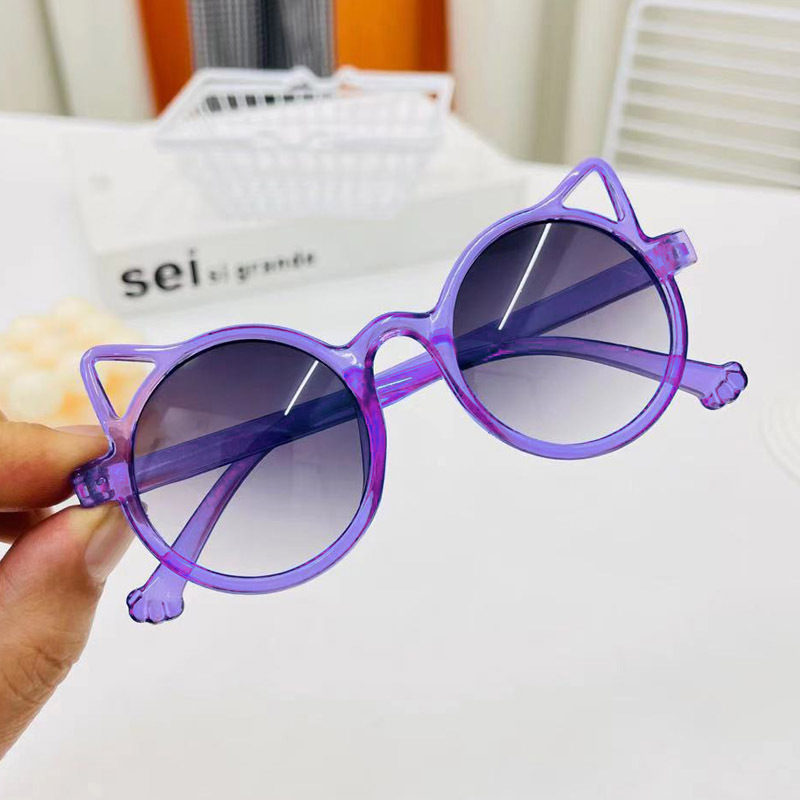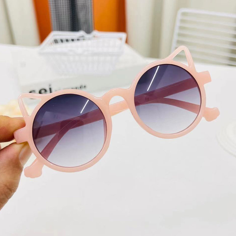 공장 직판 어린이 선글라스 한국 원형 프레임 자외선 방지 다채로운 젤리 프레임 고양이 귀 안경 차양 안경