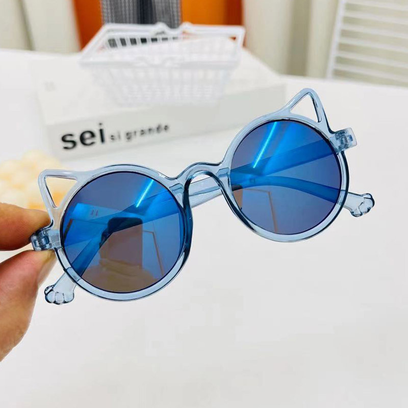 공장 직판 어린이 선글라스 한국 원형 프레임 자외선 방지 다채로운 젤리 프레임 고양이 귀 안경 차양 안경스토어 가기