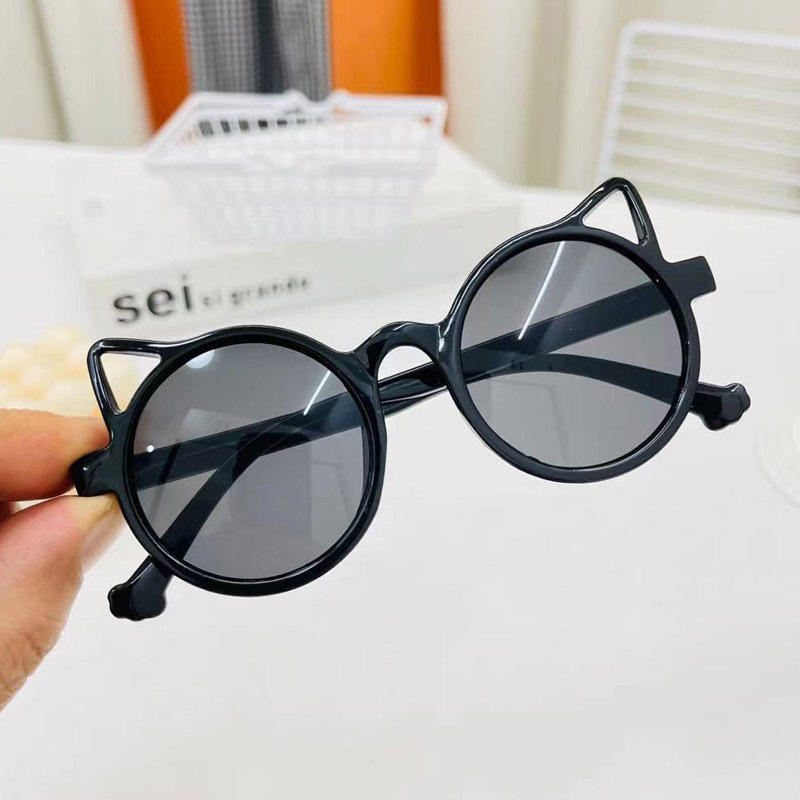 儿童太阳镜新款猫耳朵圆框防紫外线墨镜时尚3-8岁宝宝眼镜遮阳镜