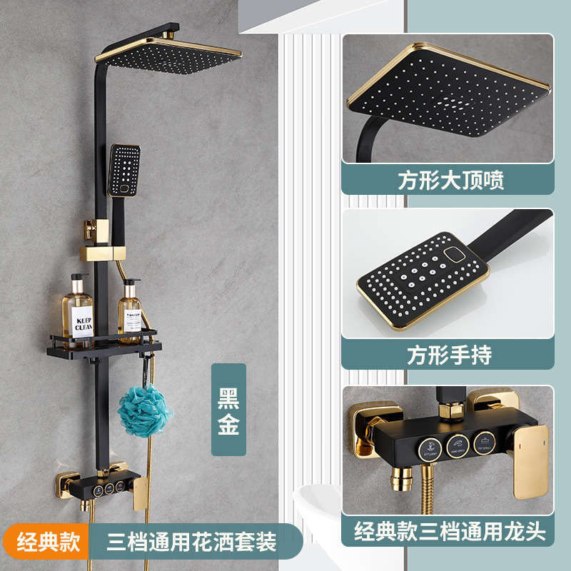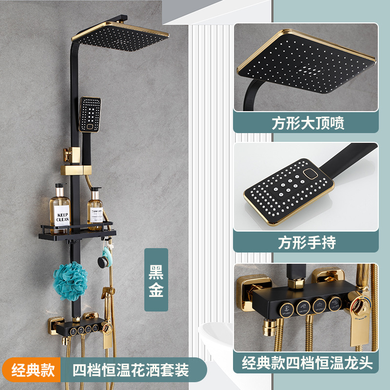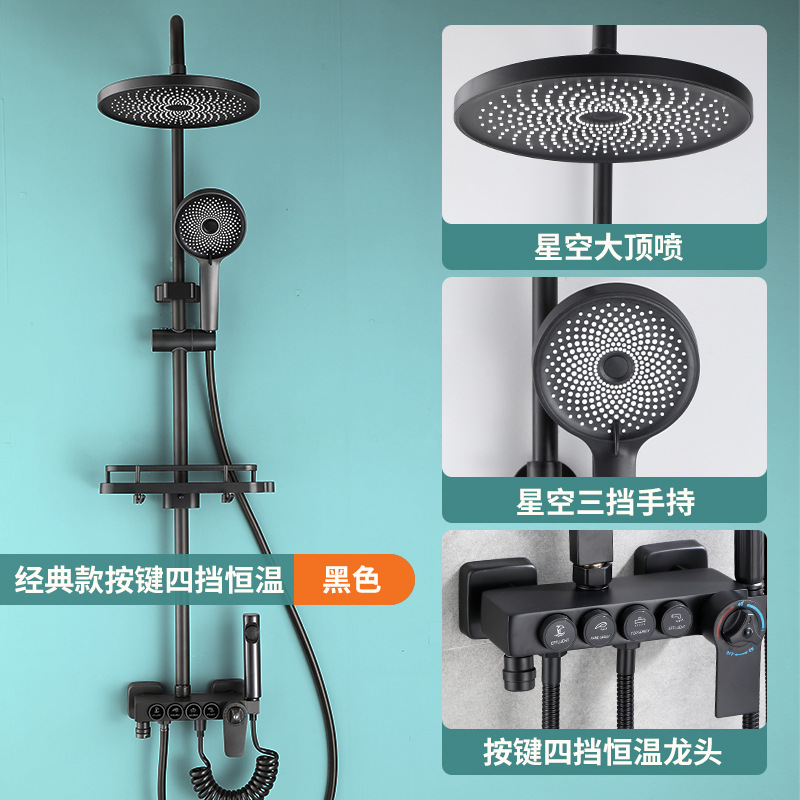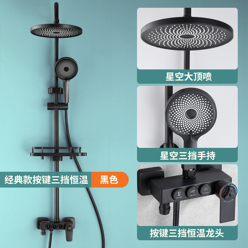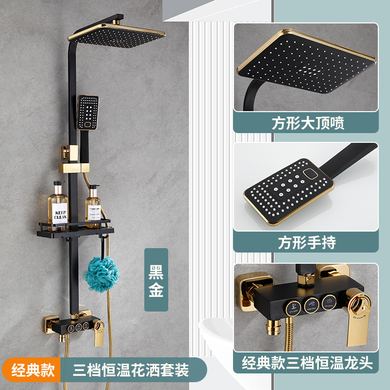 욕실 황동 샤워 헤드 세트 가정용 욕실 블랙 온도 조절 샤워기 레인 샤워 헤드 다기능스토어 가기