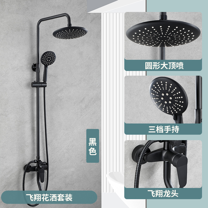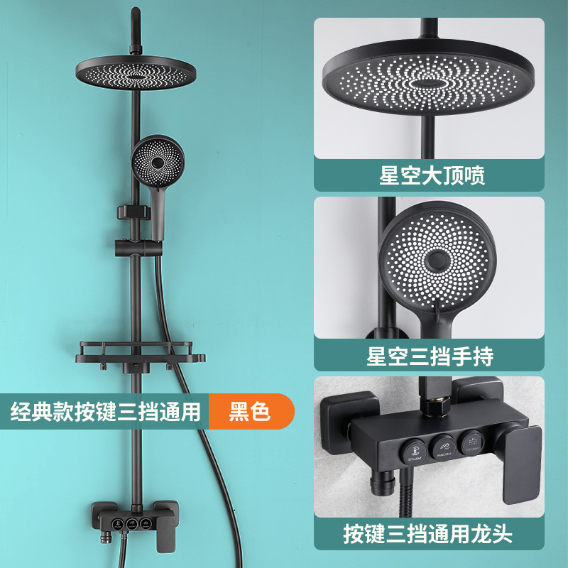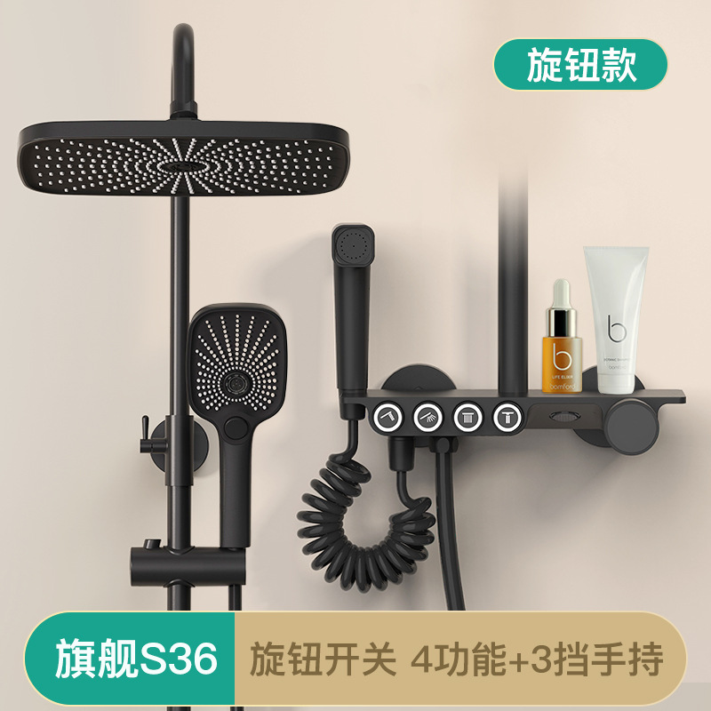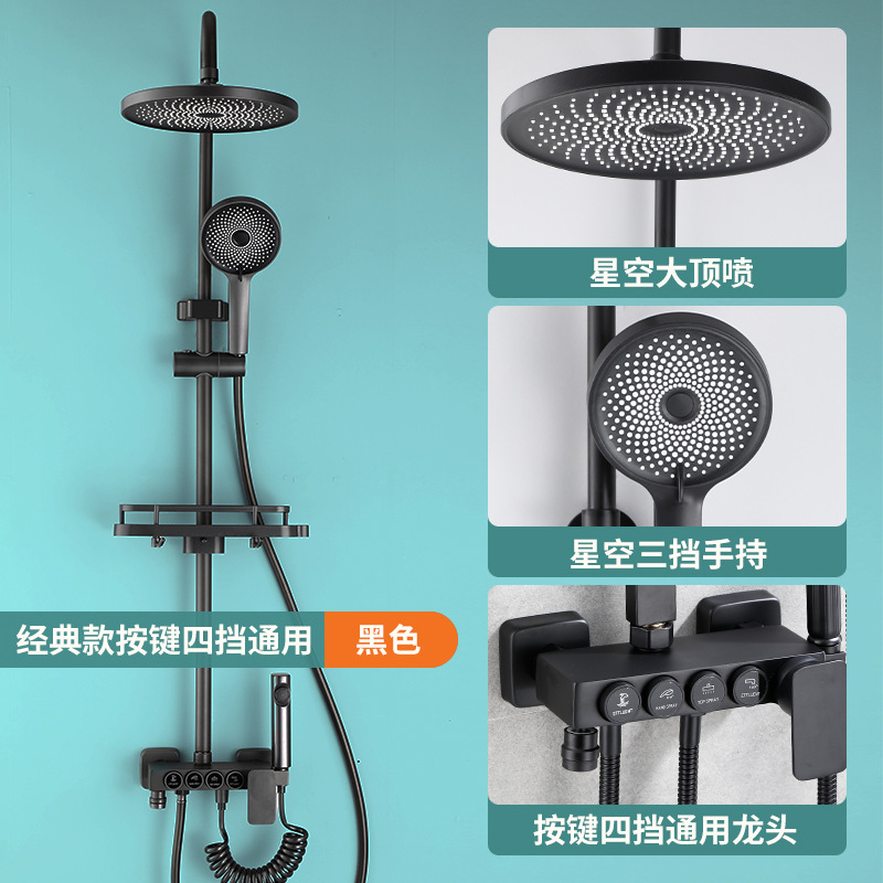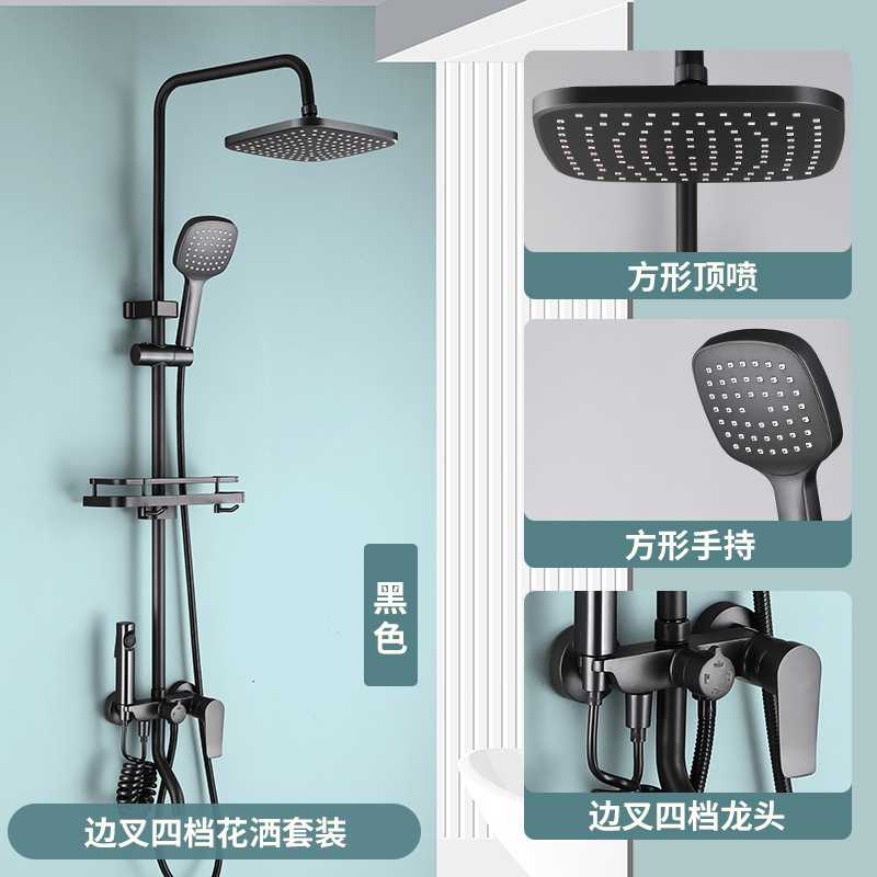 욕실 황동 샤워 헤드 세트 가정용 욕실 블랙 온도 조절 샤워기 레인 샤워 헤드 다기능스토어 가기