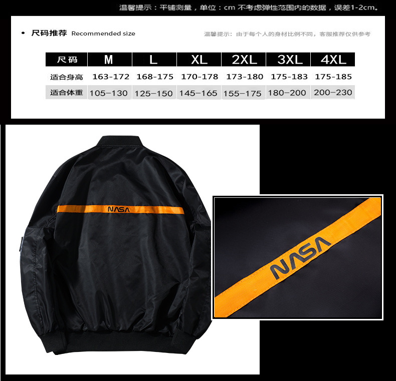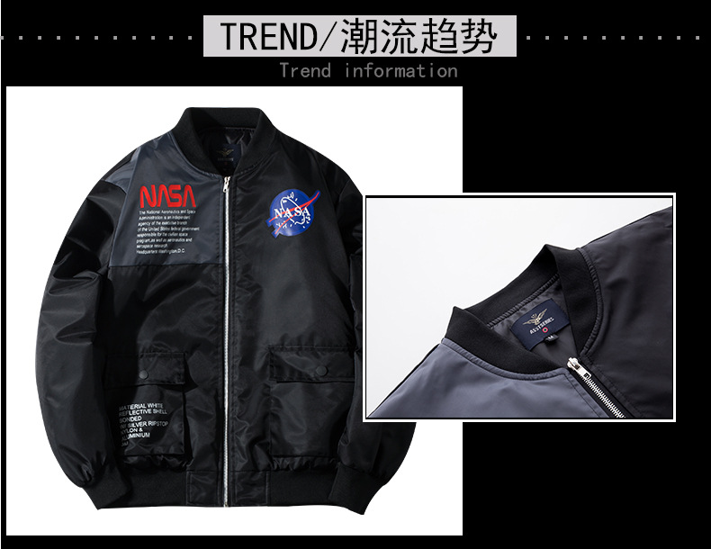 크로스보더 NASA 공동브랜드 MA1 파일럿 재킷 남성 우주비행사 작업복 재킷 남녀공용 캐주얼 재킷 유럽 스타일스토어 가기