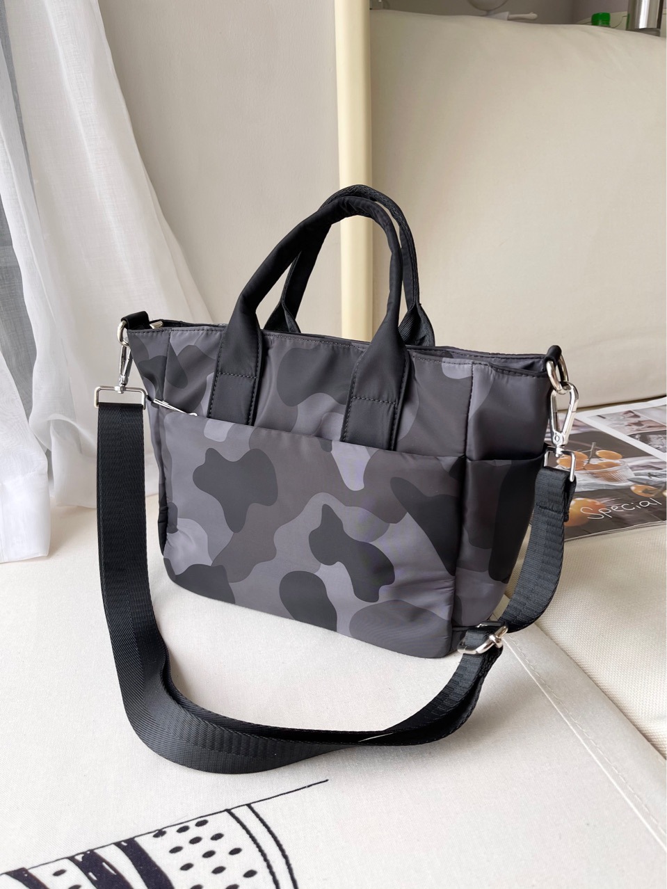 한국형 핸드백 만두백 중형 다중 수납칸 나일론 천 핸드백 숄더백 크로스백 여성용 수납 캐주얼 다용도 가방
