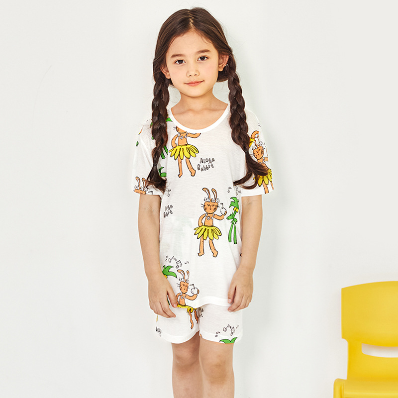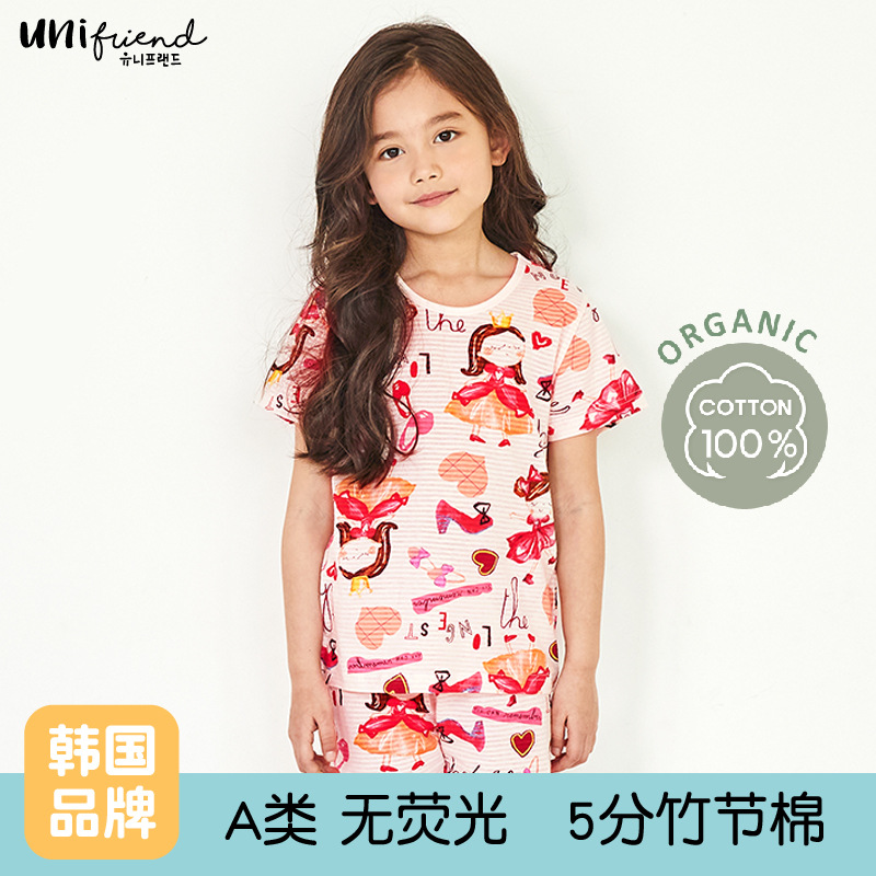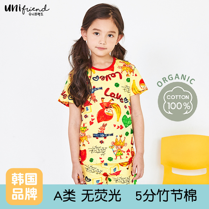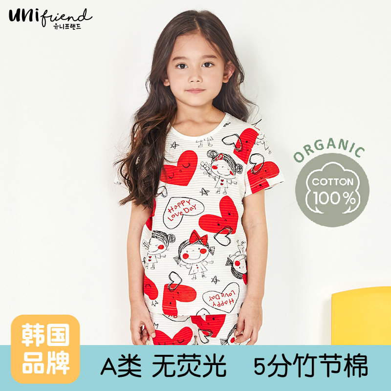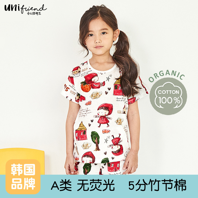 Unifriend 봄과 여름 새로운 아동복 한국식 홈웨어 남녀 보물 5 점 반팔 대나무 면 카테고리 A스토어 가기