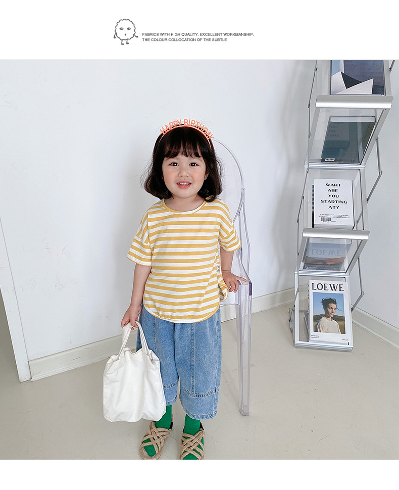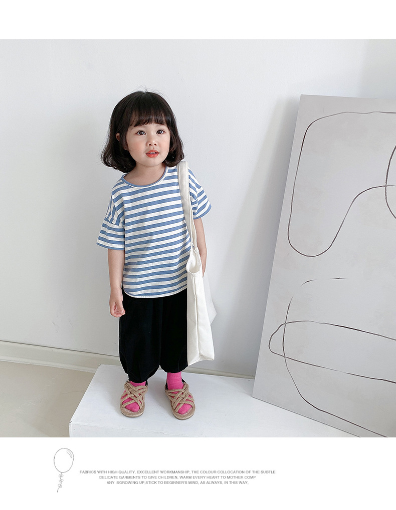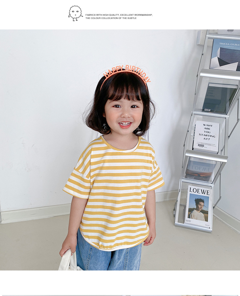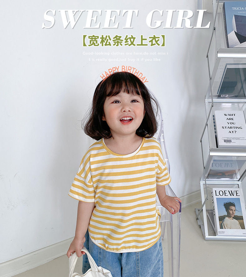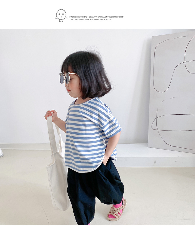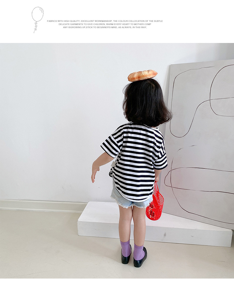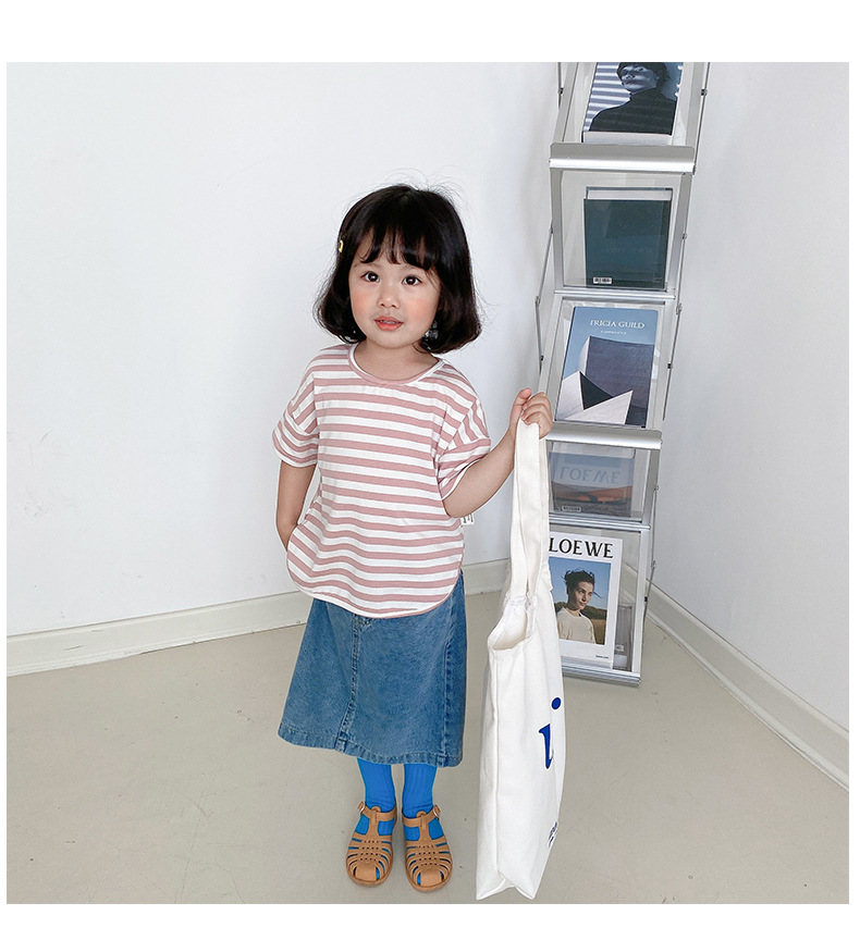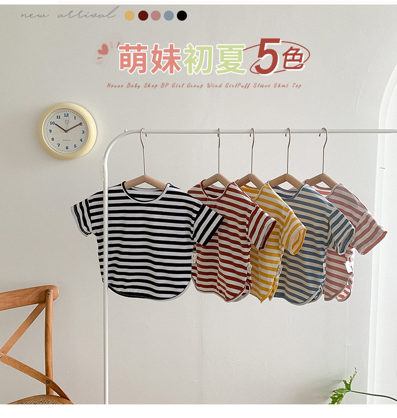 기본 아동 스트라이프 반팔 티셔츠 여아 라운드 넥 스플릿 배트 탑 코튼 한국 아동복 도매스토어 가기