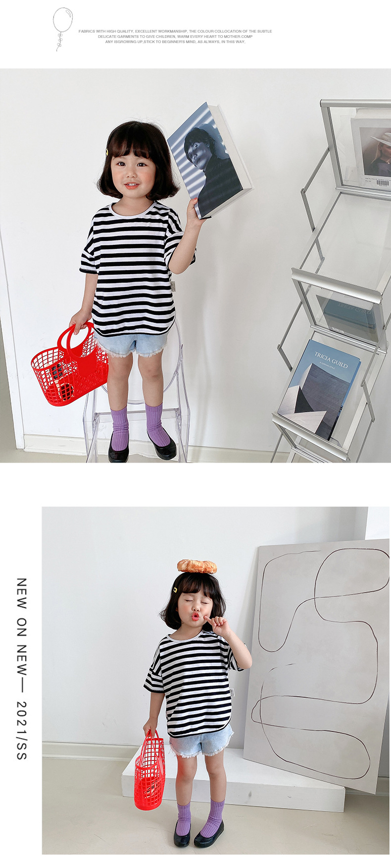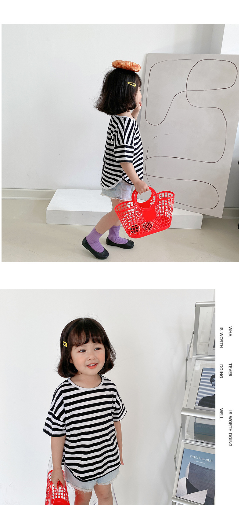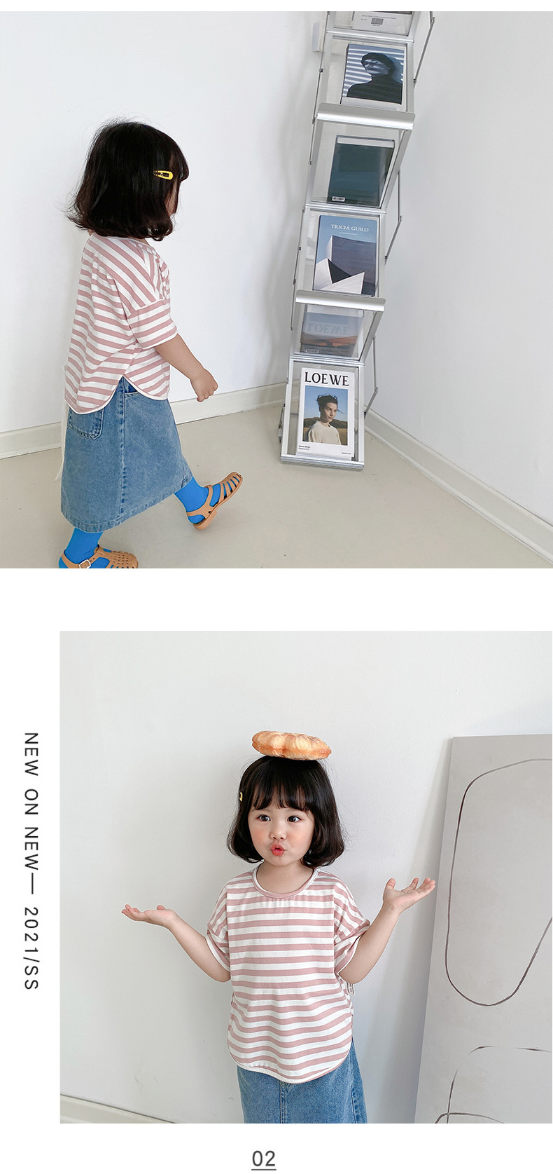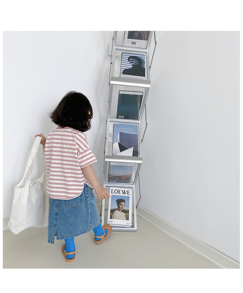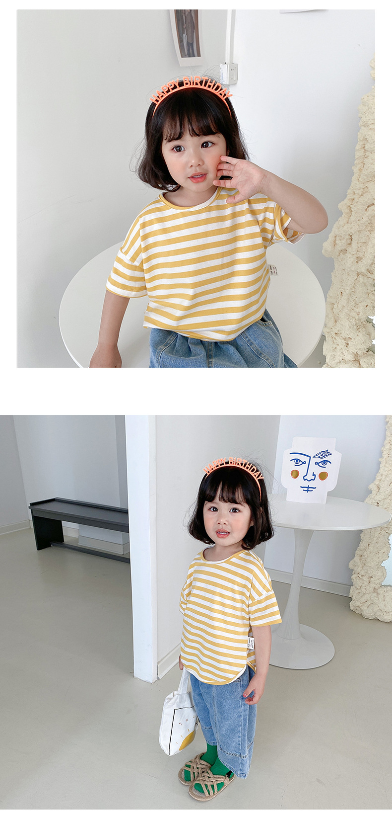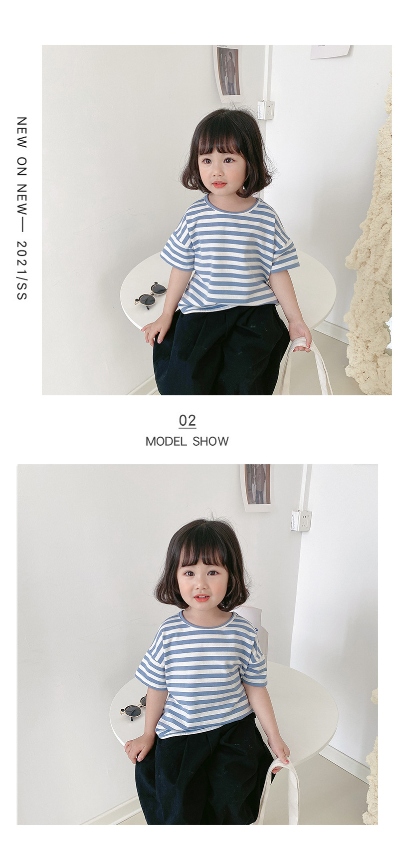 기본 아동 스트라이프 반팔 티셔츠 여아 라운드 넥 스플릿 배트 탑 코튼 한국 아동복 도매스토어 가기
