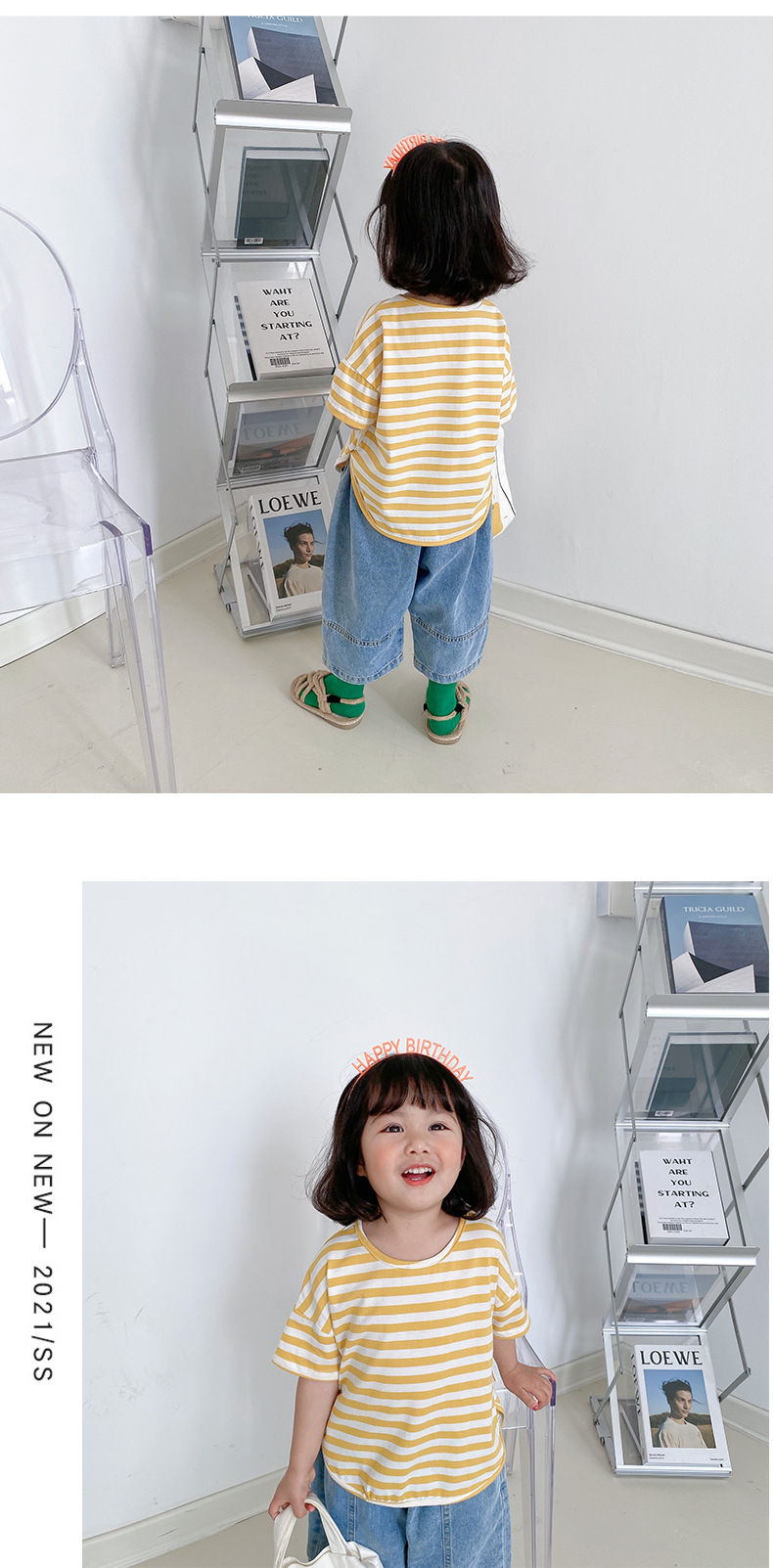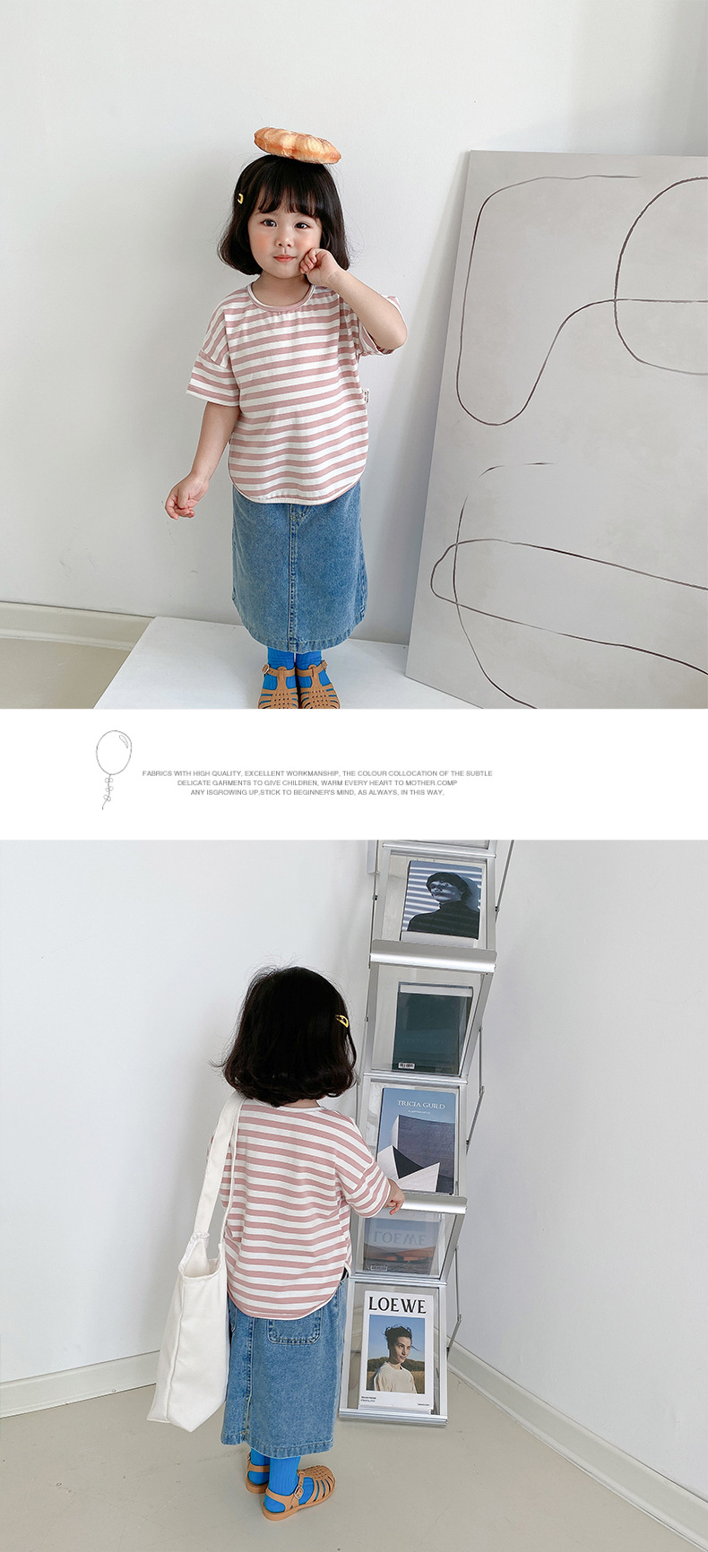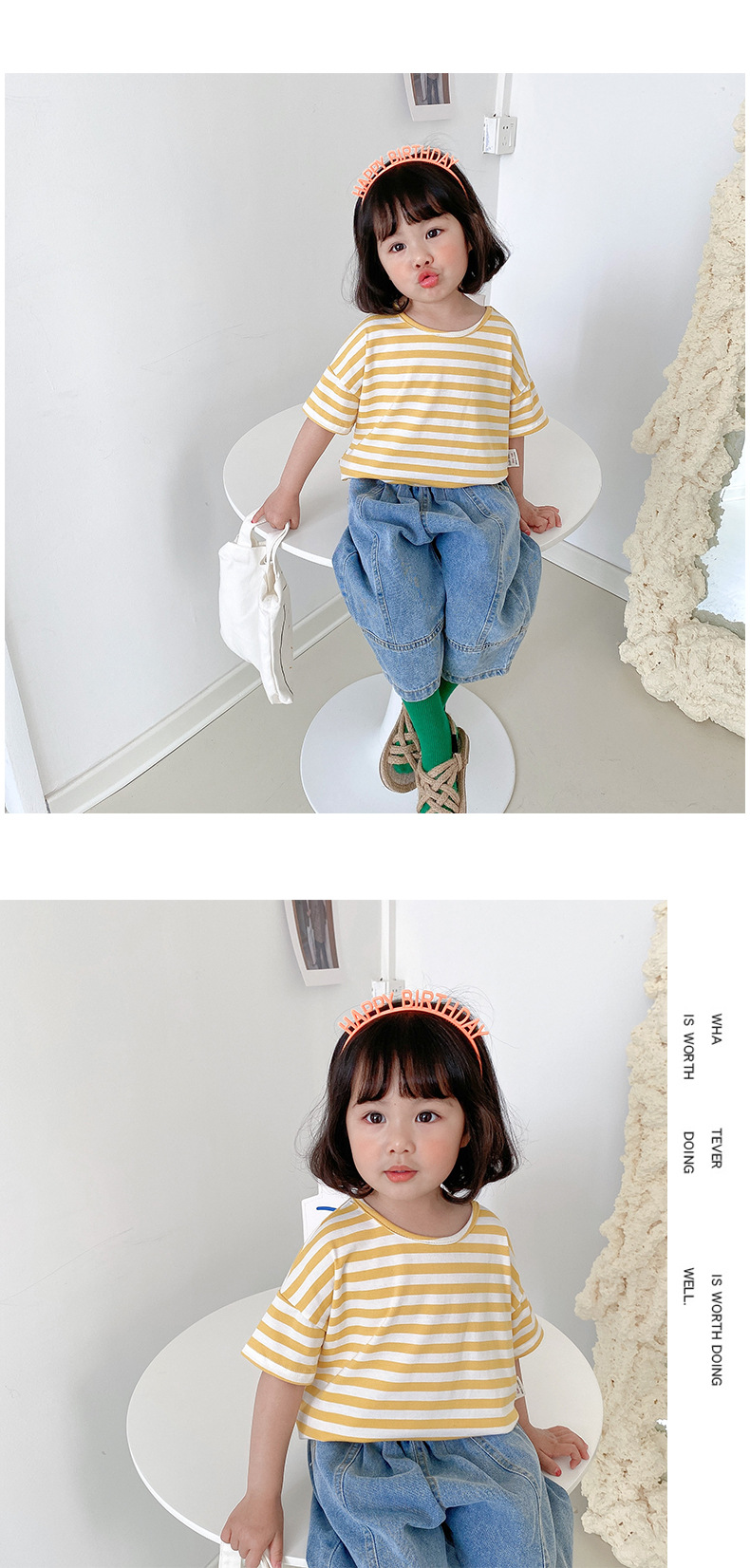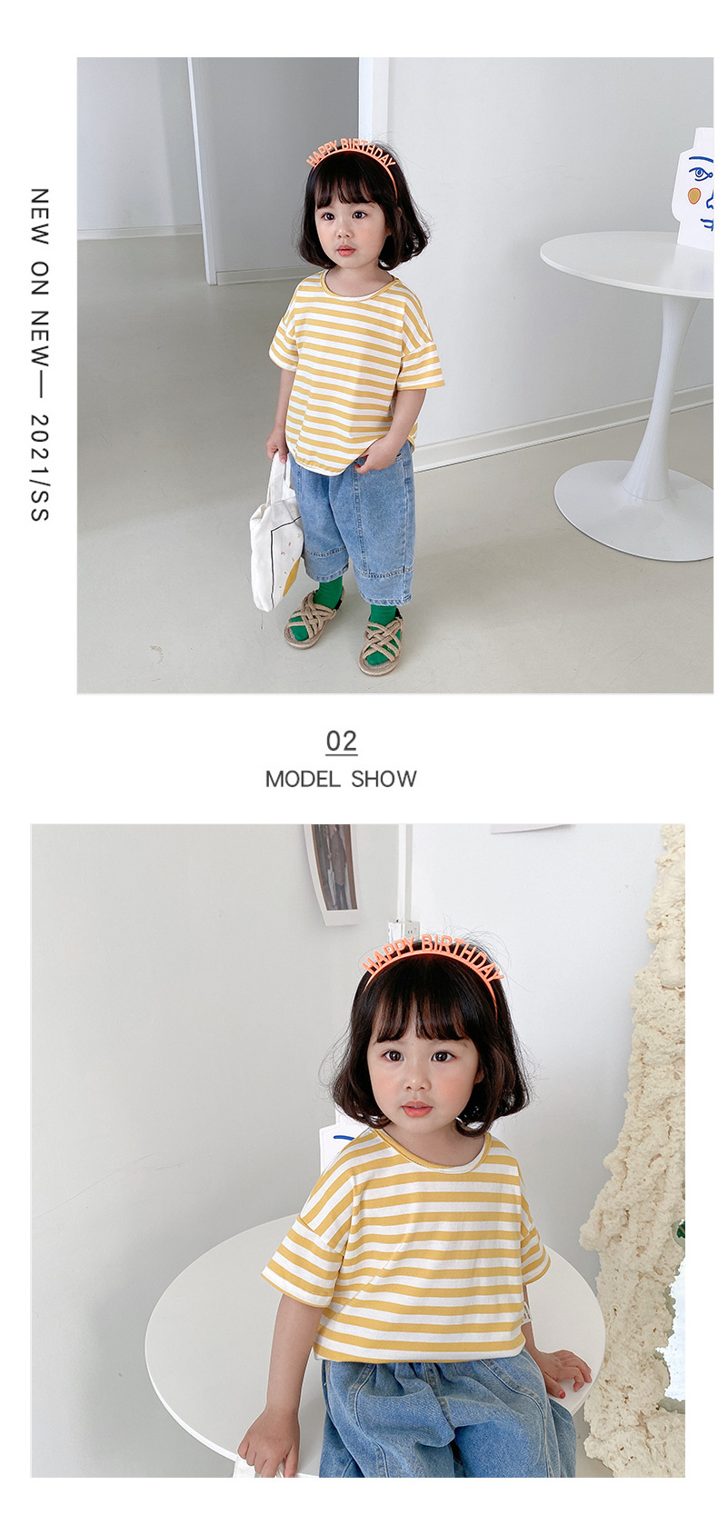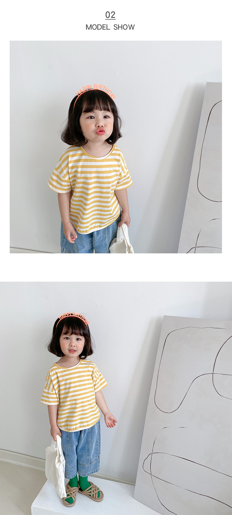 기본 아동 스트라이프 반팔 티셔츠 여아 라운드 넥 스플릿 배트 탑 코튼 한국 아동복 도매스토어 가기