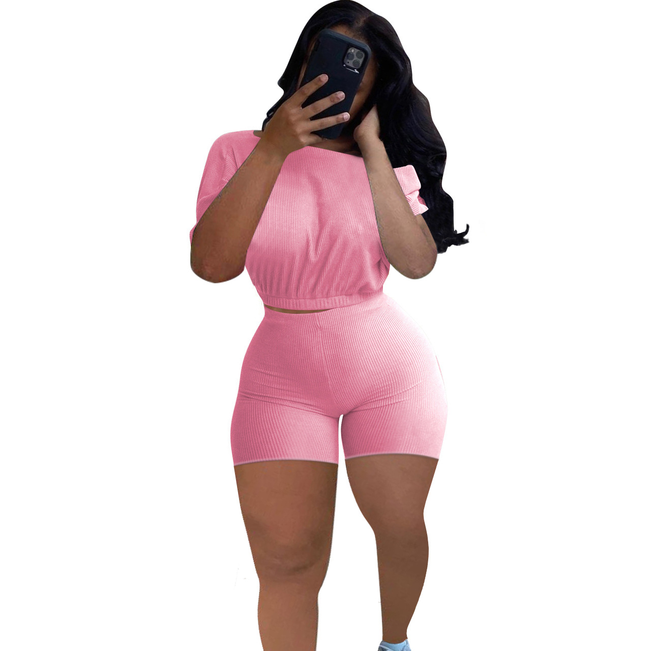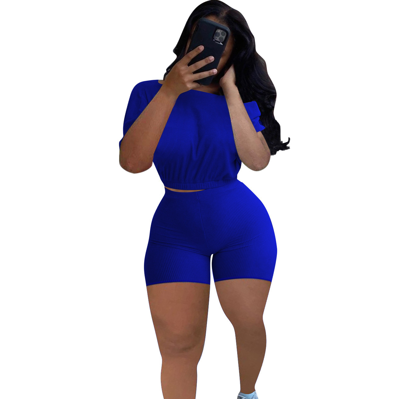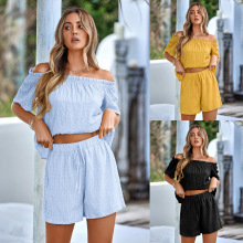 2021 크로스 보더 아마존 이베이 유럽과 미국 패션 여성용 핏 솔리드 컬러 숄더 투피스 세트스토어 가기