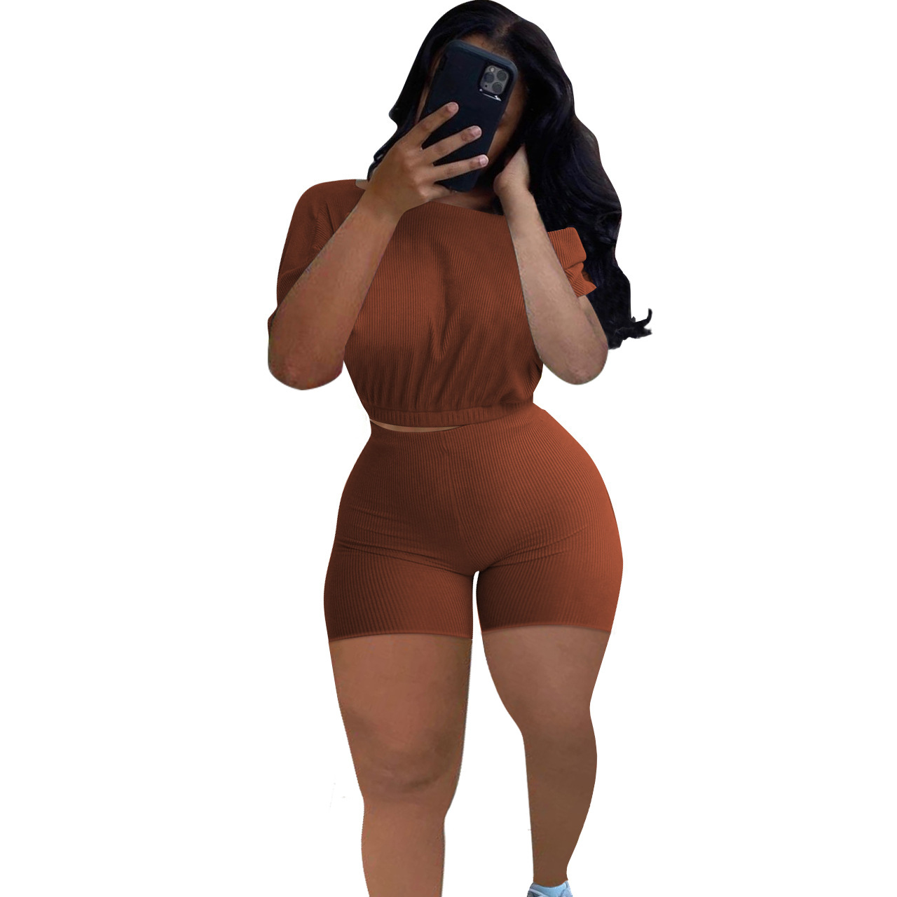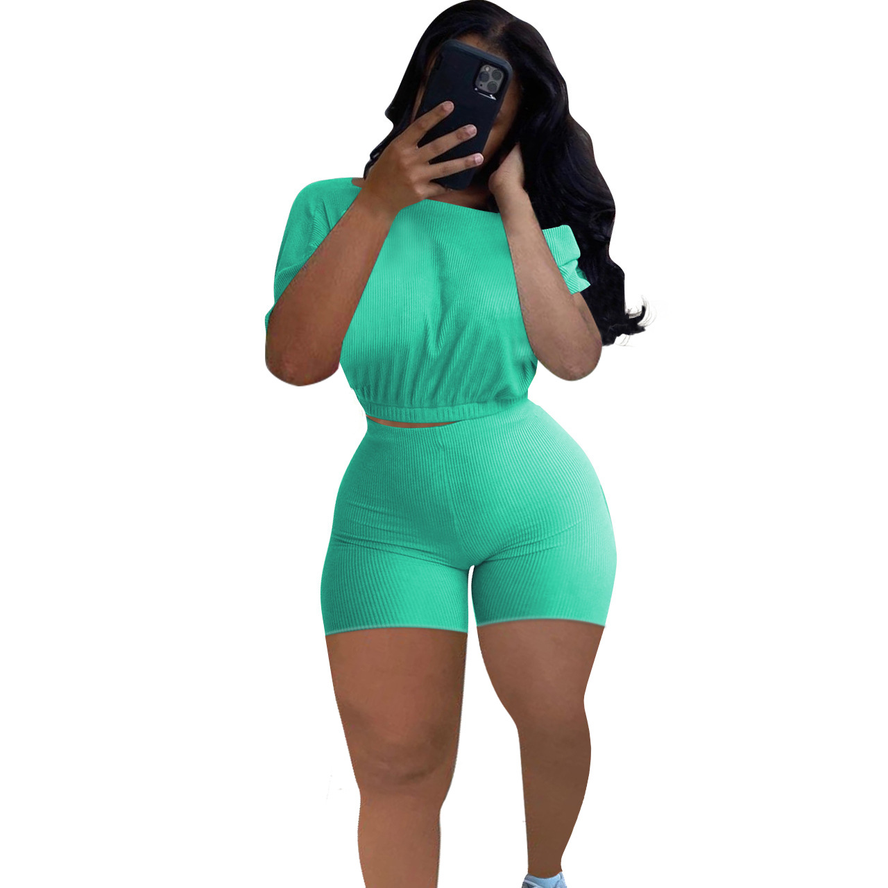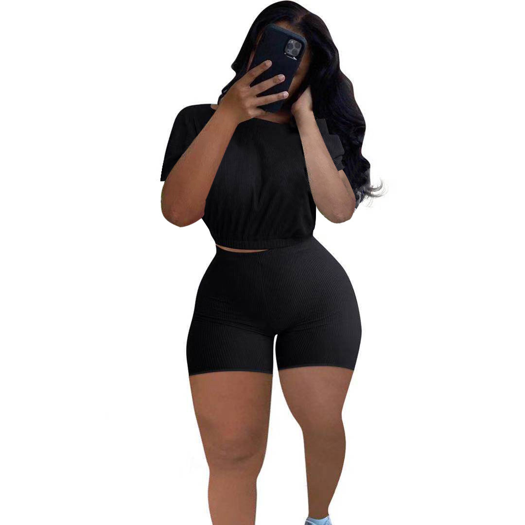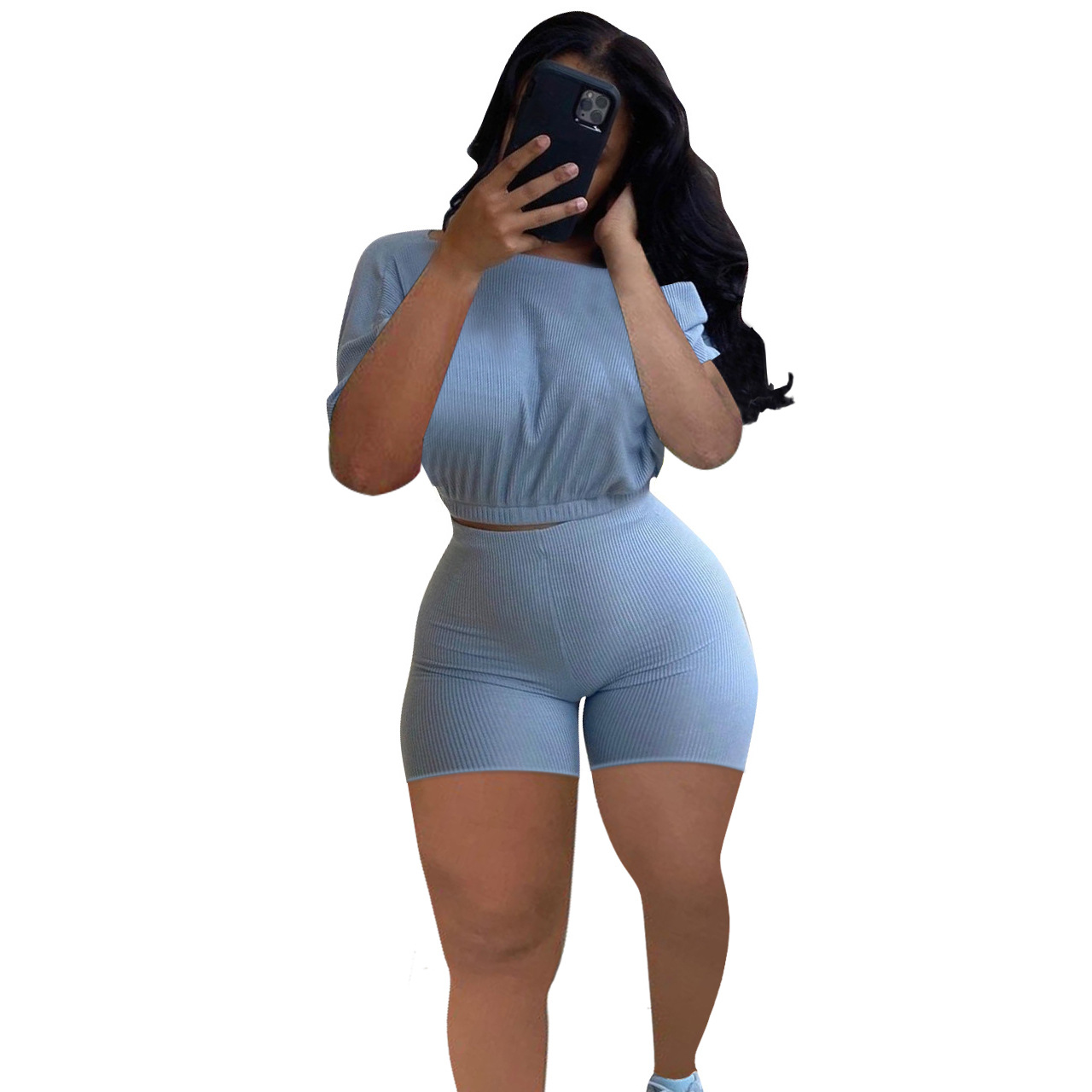 2021 크로스 보더 아마존 이베이 유럽과 미국 패션 여성용 핏 솔리드 컬러 숄더 투피스 세트