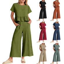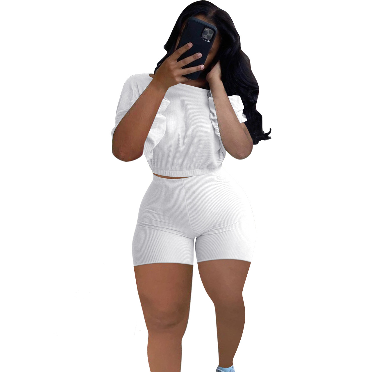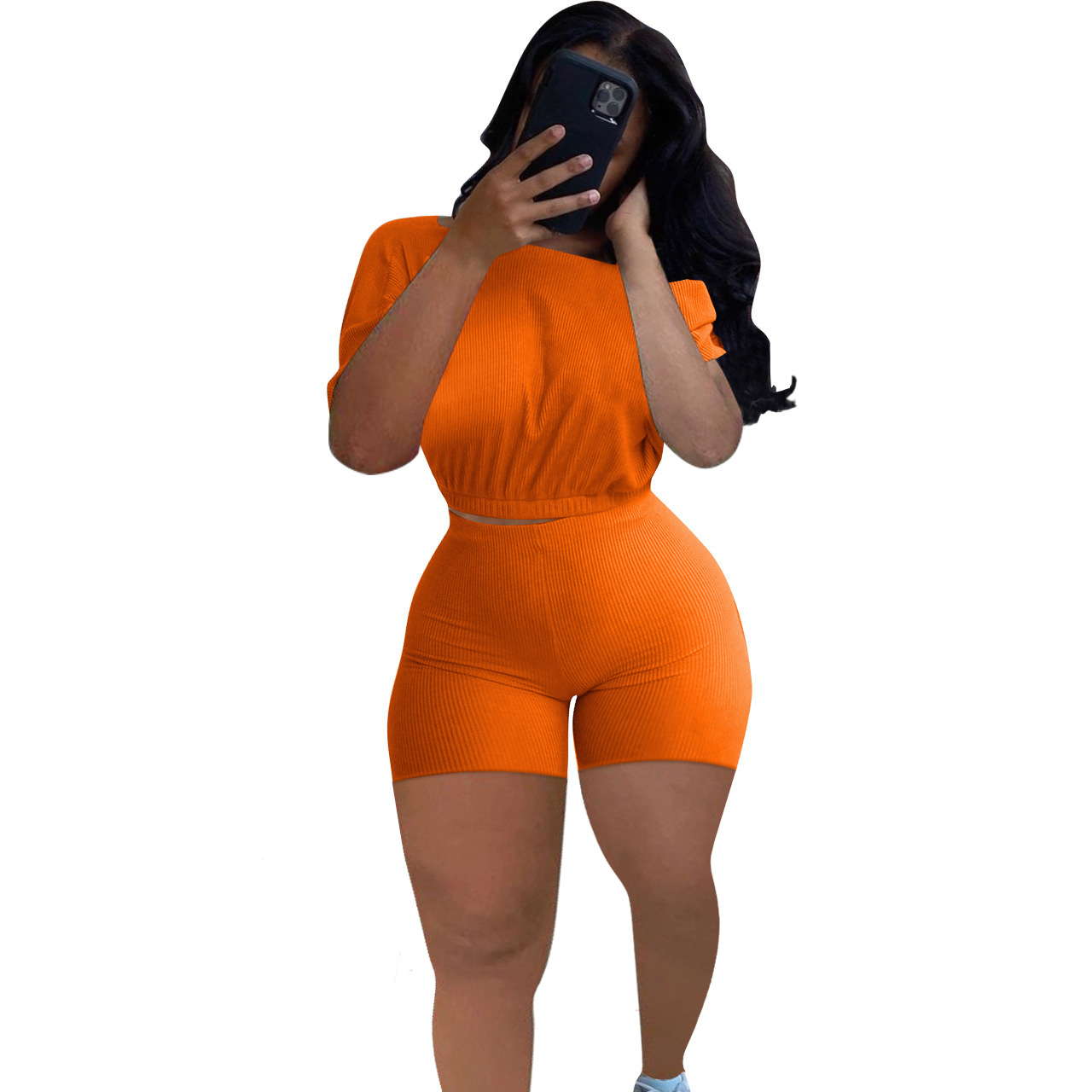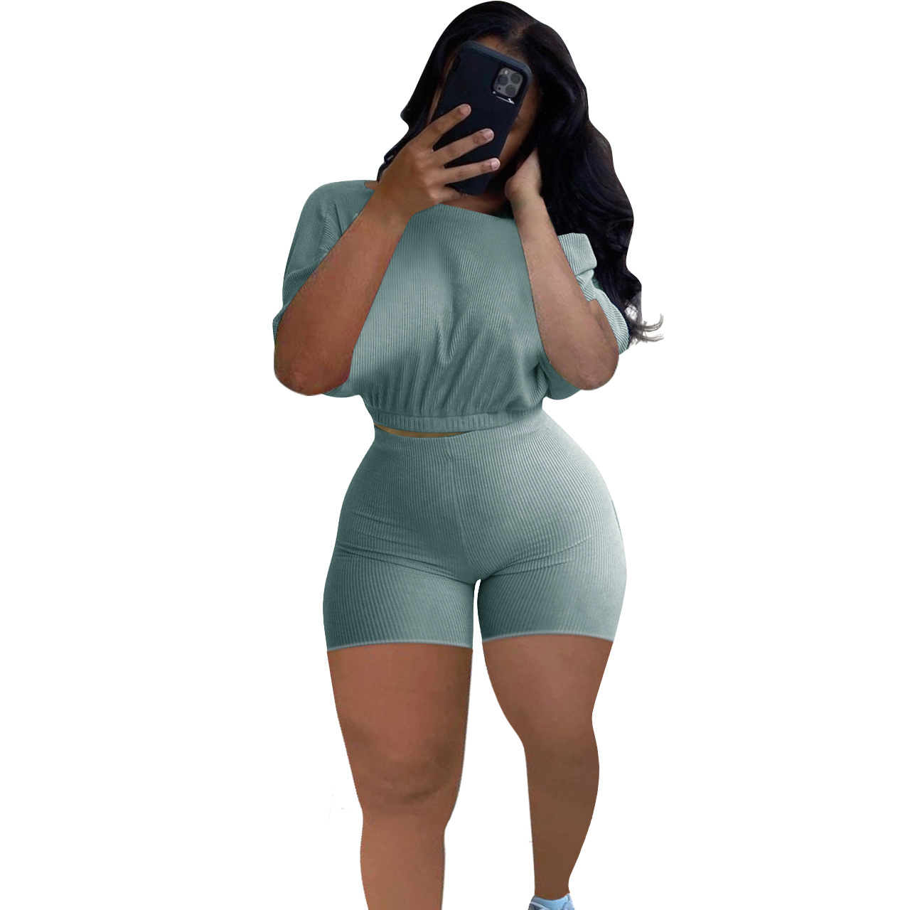 2021 크로스 보더 아마존 이베이 유럽과 미국 패션 여성용 핏 솔리드 컬러 숄더 투피스 세트