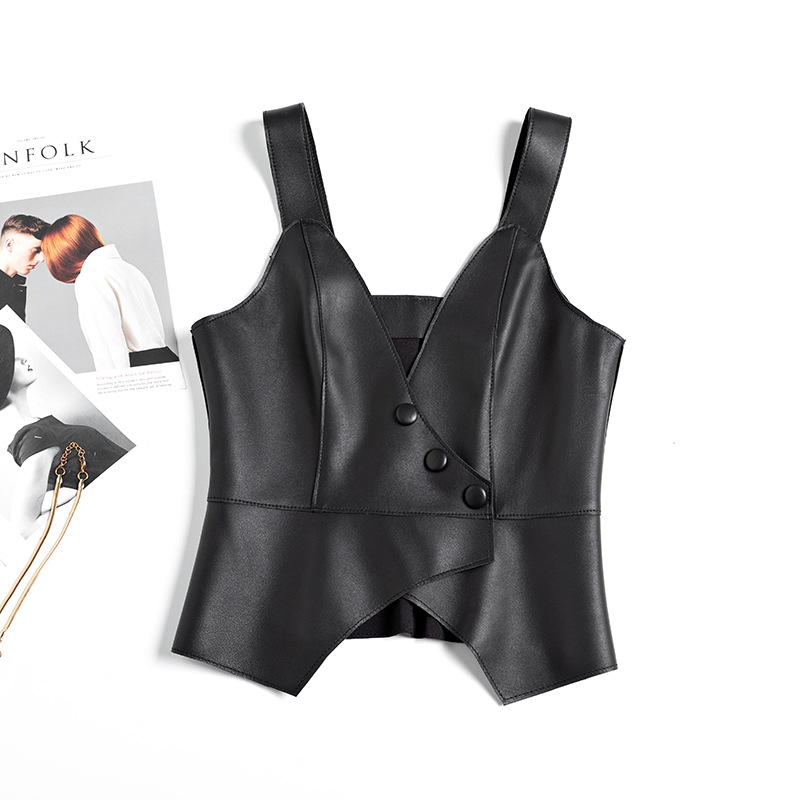 유럽산 천연 가죽 캐미솔 여성용 2025 봄 가을 신상품 외출용 가죽 조끼 한국 스타일 슬림핏 양가죽