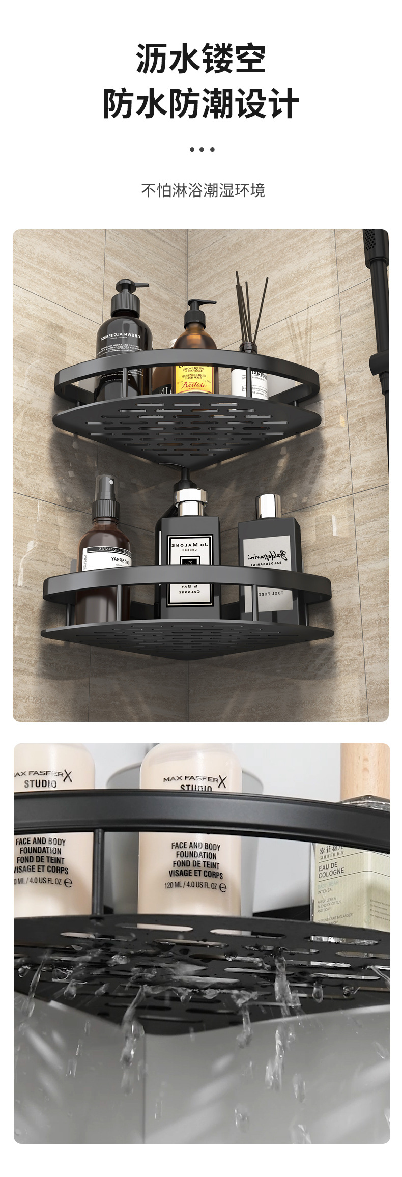 • 3 층 업그레이드 삼각형 바구니-블랙 (가드 레일 농축)
