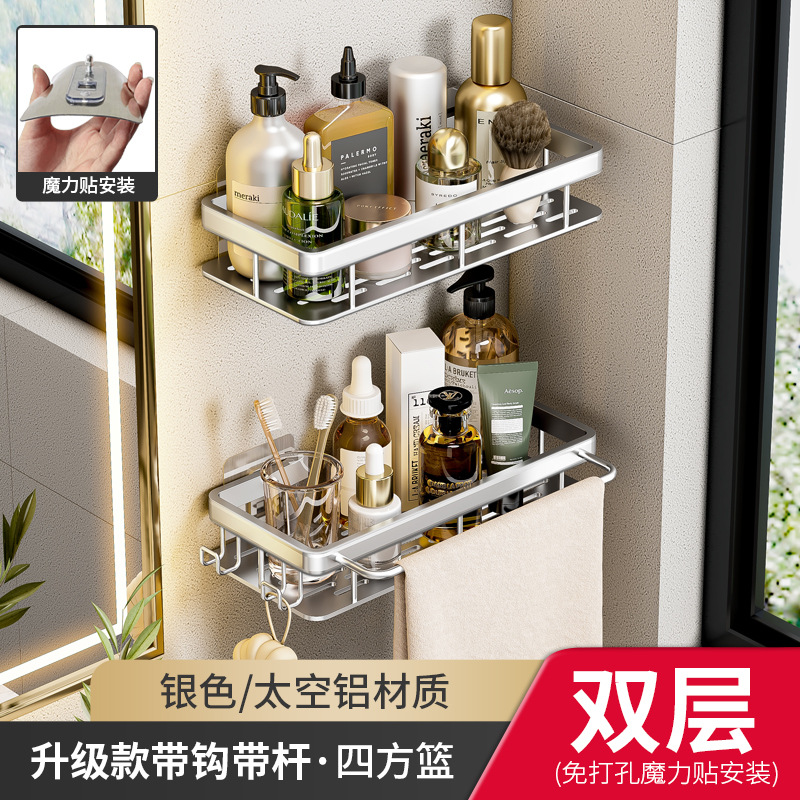 • 업그레이드된 더블 레이어 실버 스퀘어 바스켓 (후크 및 로드 포함)
