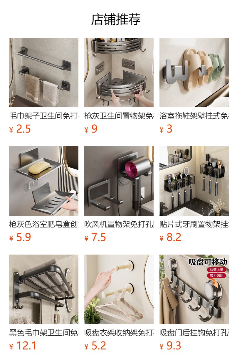 화장실 수납 랙 흡입형 화장실 화장실 세면대 벽걸이 벽 주방 욕실 수납 펀치 무료스토어 가기