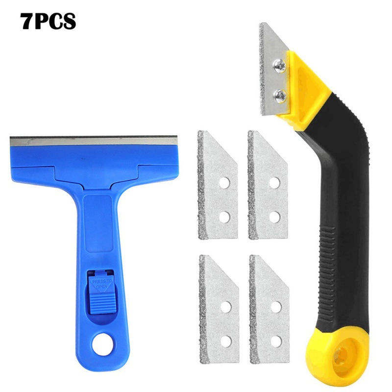 • 7 종 세트 (노랑 및 검정 베벨 핸들 스크레이퍼 조합 4 블레이드 1 블루 블레이드)