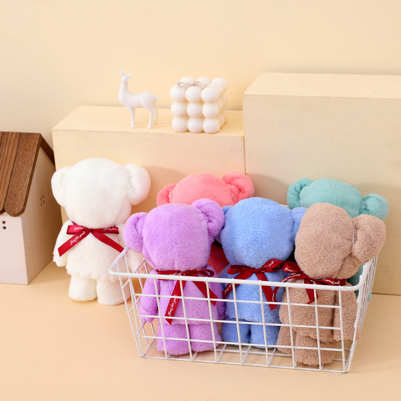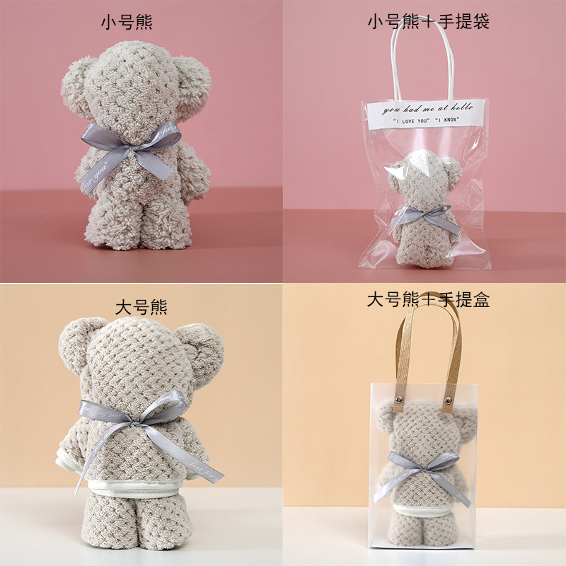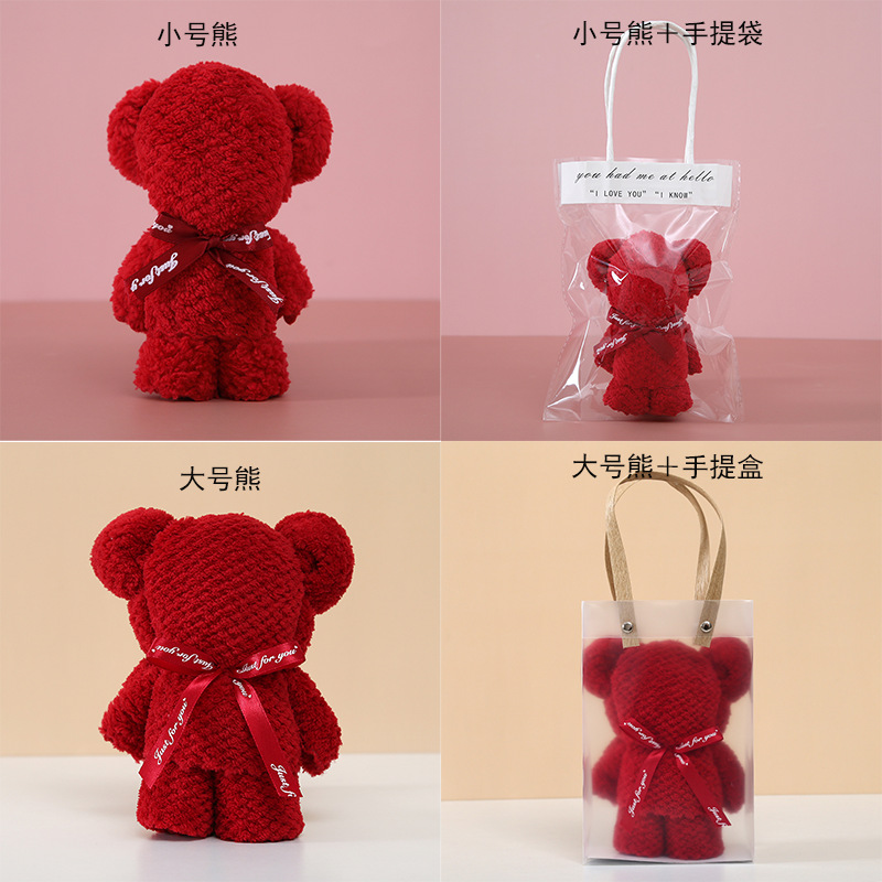 산호벨벳 레드 타월 곰돌이 모양 휴대용 선물 상자, 로고 자수 가능, 흡수성 좋은 파인애플 무늬 선물, 웨딩 타월스토어 가기