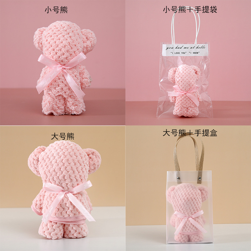 산호벨벳 레드 타월 곰돌이 모양 휴대용 선물 상자, 로고 자수 가능, 흡수성 좋은 파인애플 무늬 선물, 웨딩 타월