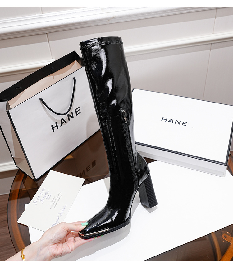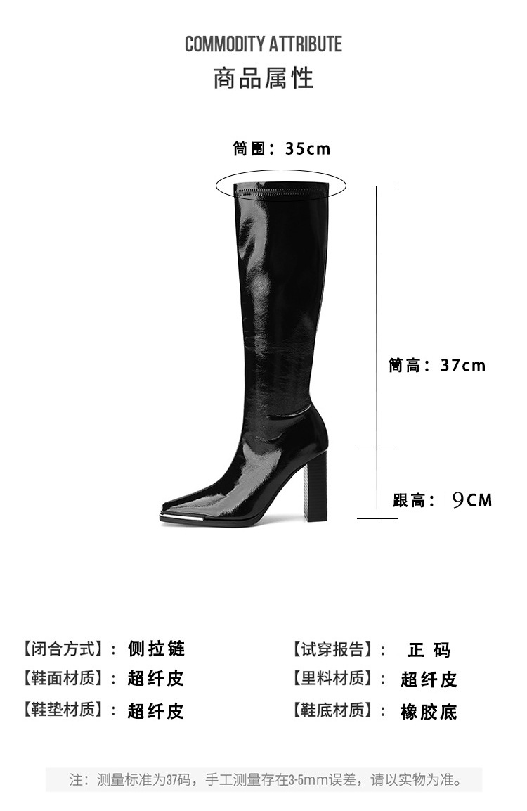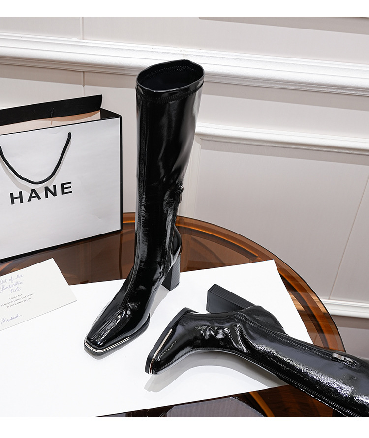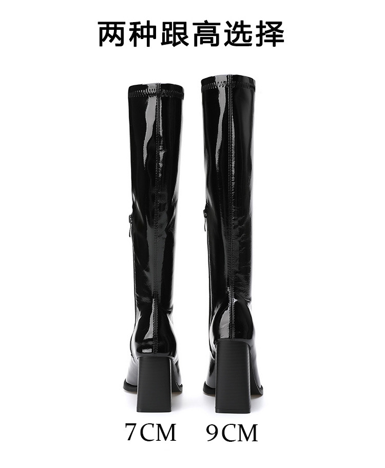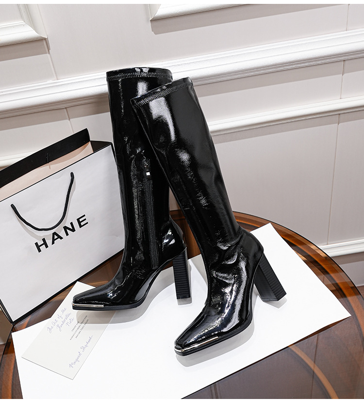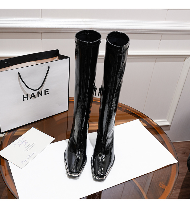 켄도 롱부츠 2025 가을 겨울 철제 앞코 두꺼운 굽 사각 앞코 롱부츠 하이힐 바이커 롱부츠 섹시한 겨울 여성 부츠스토어 가기