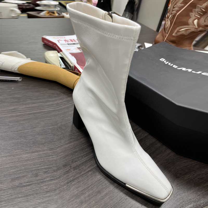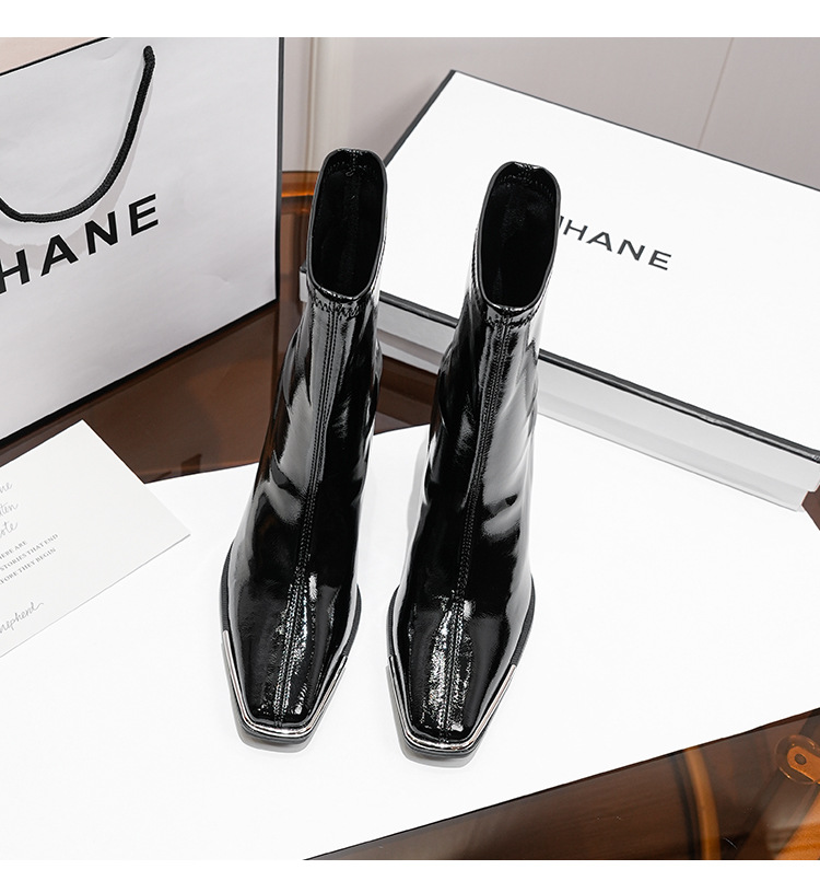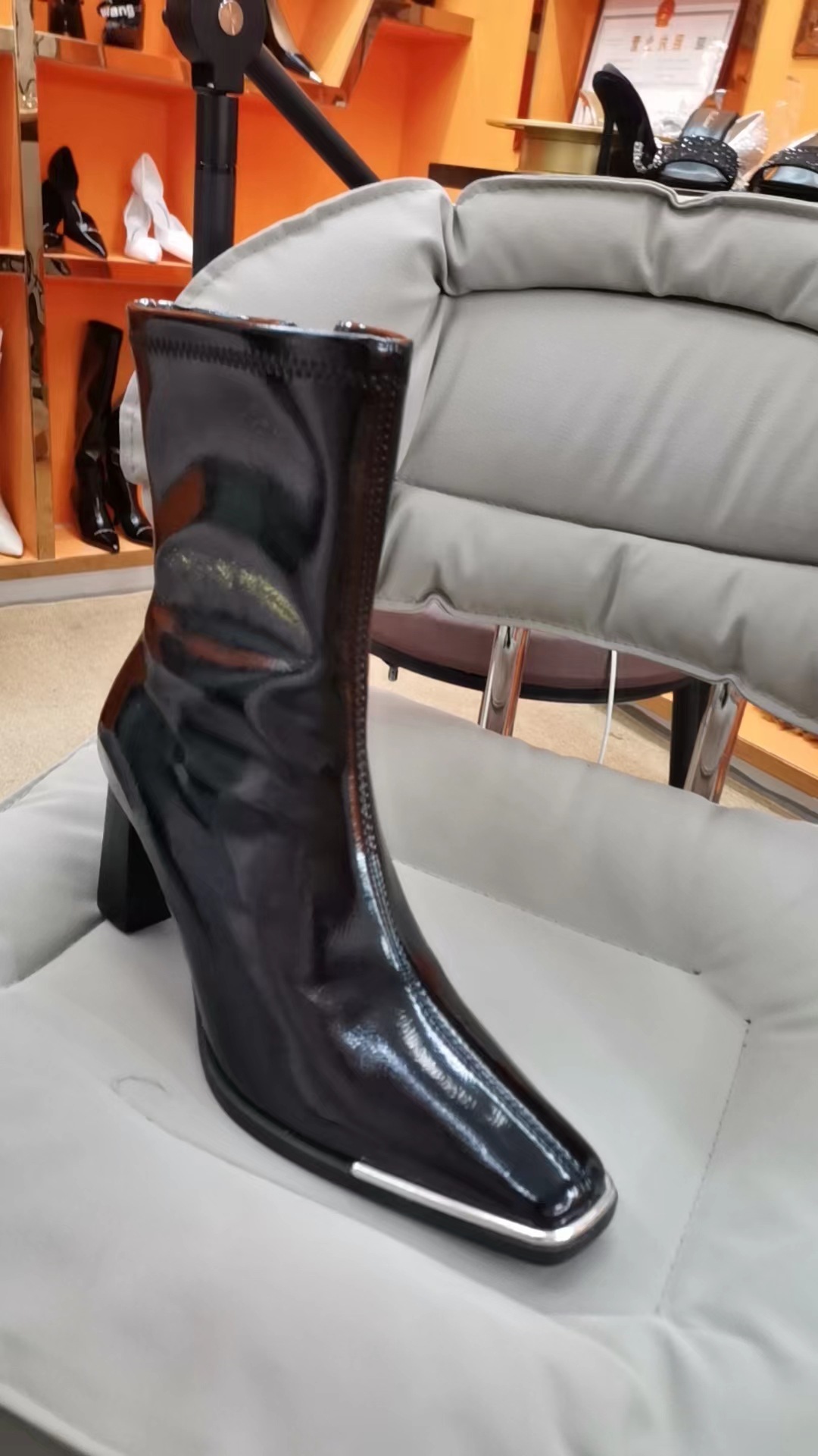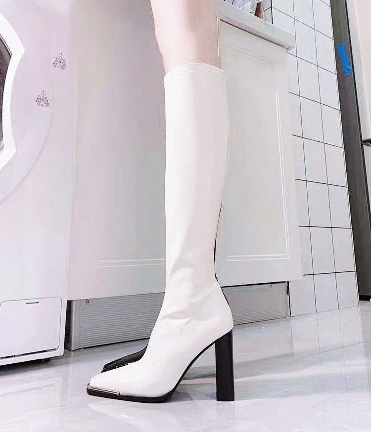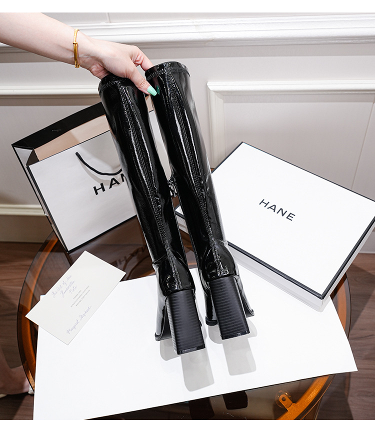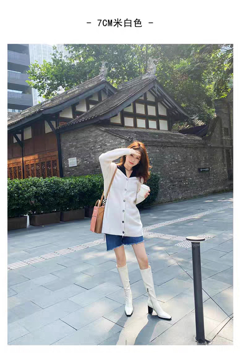 켄도 롱부츠 2025 가을 겨울 철제 앞코 두꺼운 굽 사각 앞코 롱부츠 하이힐 바이커 롱부츠 섹시한 겨울 여성 부츠스토어 가기