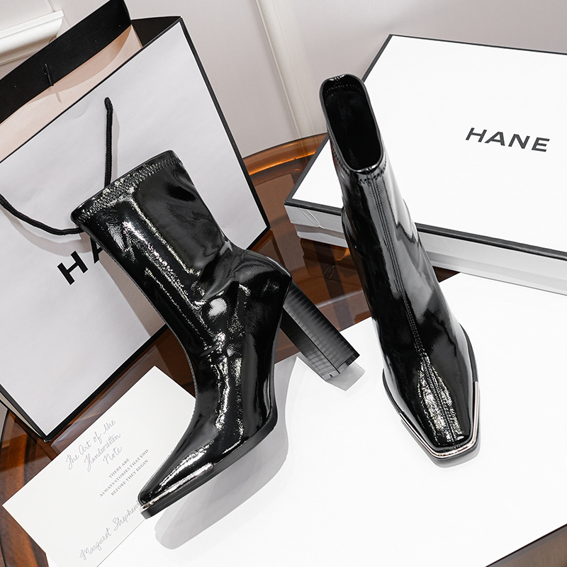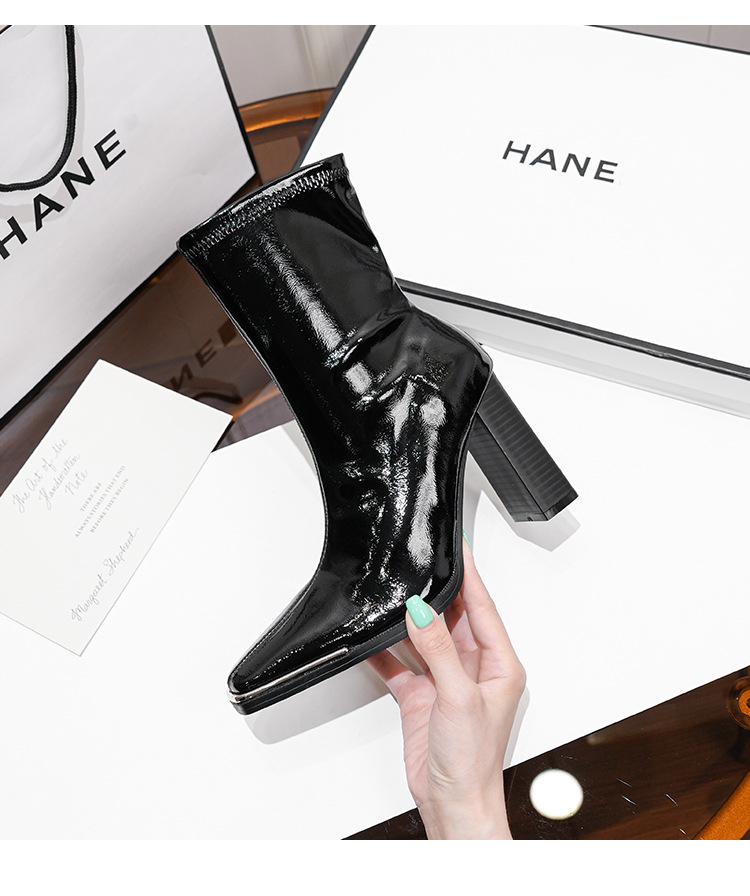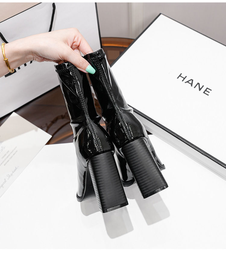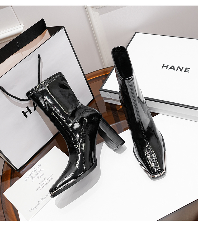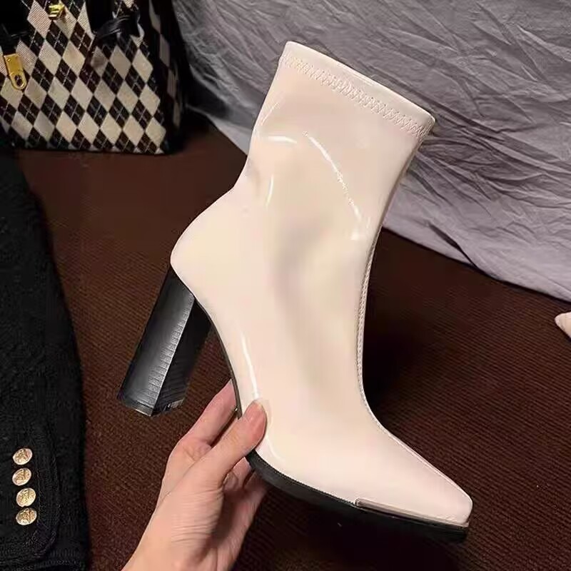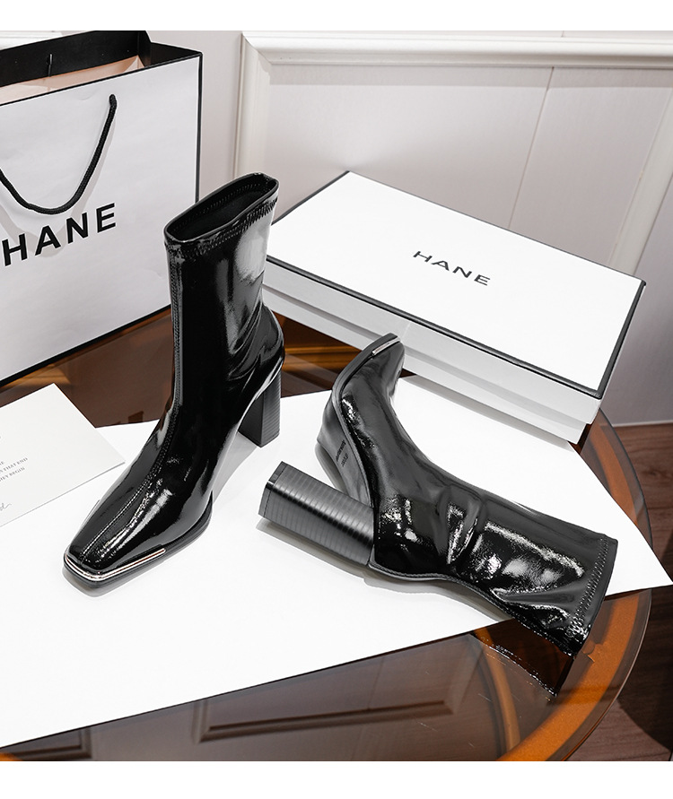 켄도 롱부츠 2025 가을 겨울 철제 앞코 두꺼운 굽 사각 앞코 롱부츠 하이힐 바이커 롱부츠 섹시한 겨울 여성 부츠스토어 가기