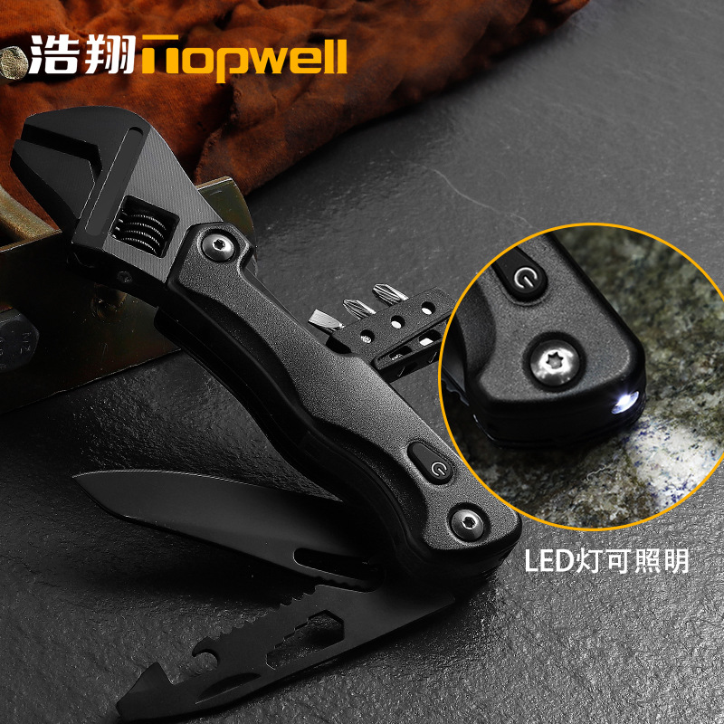 LED 조명이 있는 새로운 다기능 조절 렌치 블랙 미니 플래퍼 보드 야외 다기능 공구 렌치