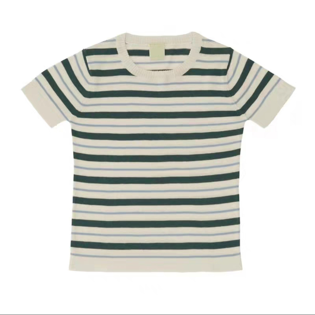• 다크 그린 스트라이프 니트 반소매