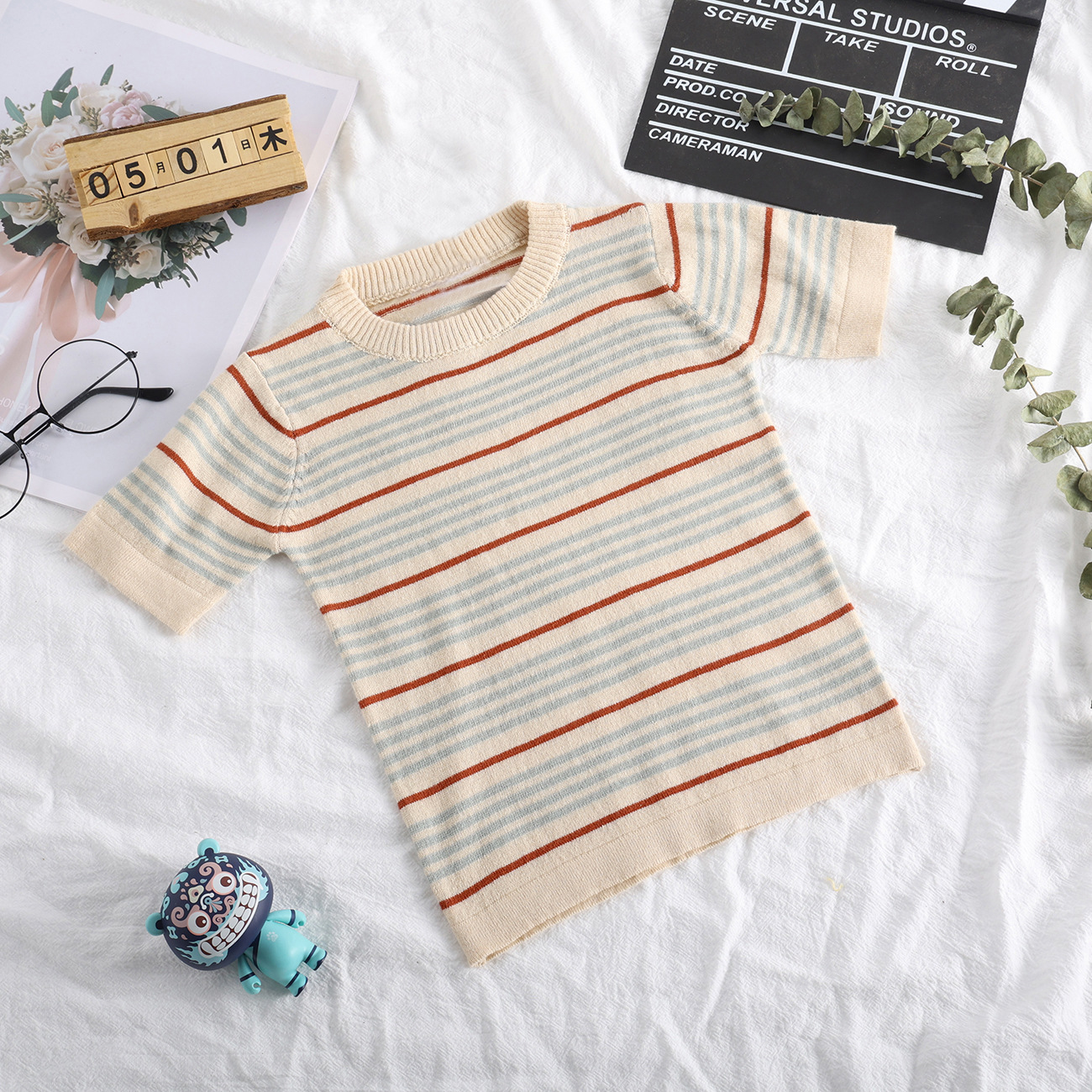 봄여름 유니섹스 아기 면 뜨개질 반팔 상의 남녀공용 부드러운 탑 스트랩 2025 인스 스타일